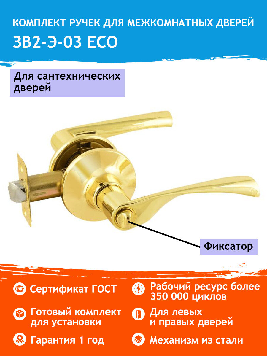 СохранитьРучки с защелкой межкомнатные Нора-М ЗВ2-Э-03 фиксатор - Золото интересное: