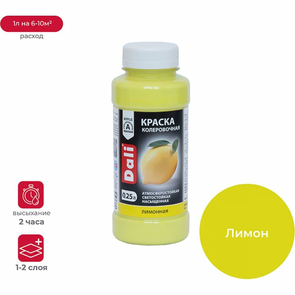 Краска Колеровочная Dali 0.25л Лимонный Акриловая / Дали.