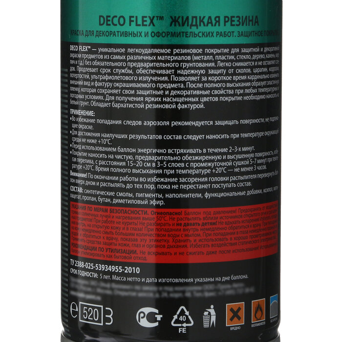 Жидкая резина KUDO "DECO FLEX", аэрозоль, 520 мл, хаки