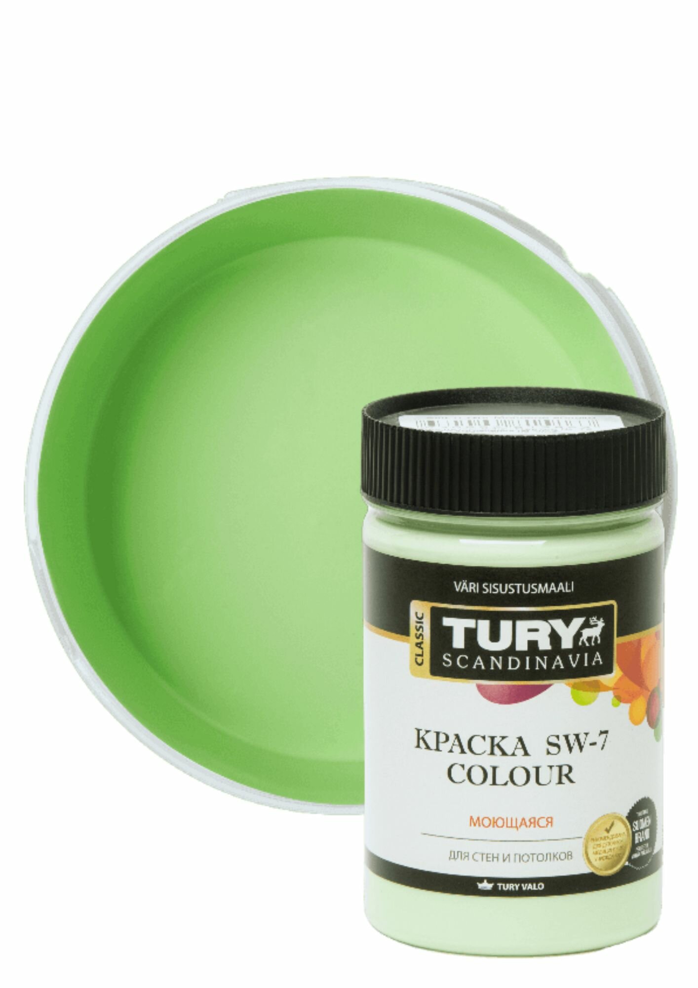 краска акриловая TURY SW-7 Colour для стен и потолков моющаяся 0,4кг молод.яблоко, арт.КрВДSW70,4МЯ