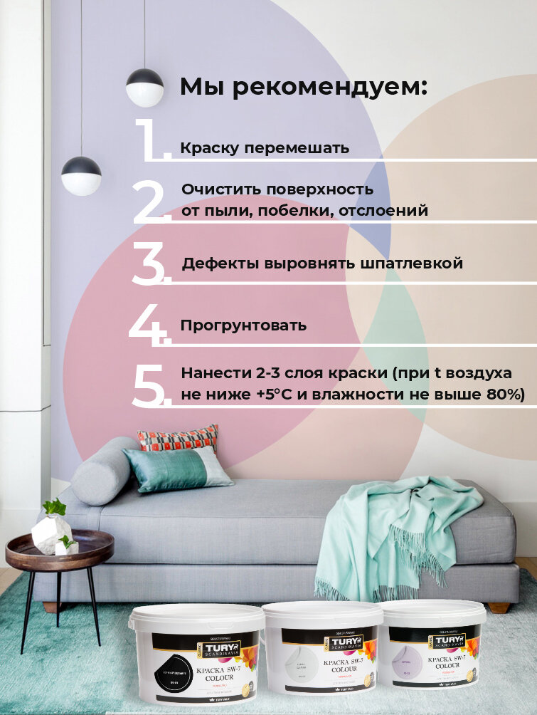 СохранитьКраска для обоев, стен и потолков TURY SW-7 Colour акриловая моющаяся быстросохнущая матовая, без запаха, цвет Черный вельвет, 2.4 кг интересное: