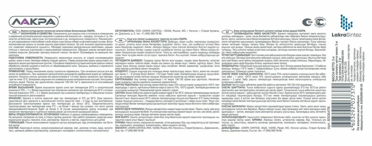 Ниже Вы можете прочитать отзывы на Краска интерьерная латексная влагостойкая Лакра белоснежная 3кг, ознакомится с подробными характеристиками, посмотреть интересные обзоры и фотографии на Краска интерьерная латексная влагостойкая Лакра белоснежная 3кг.