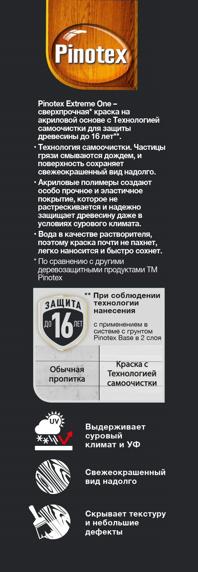 Краска для деревянных фасадов акриловая Pinotex Extreme One база BС полуматовая 0,85 л.