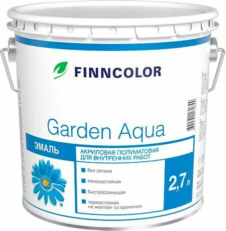 FINNCOLOR GARDEN AQUA эмаль акриловая для внутренних работ, полуматовая, база A (2,7л)