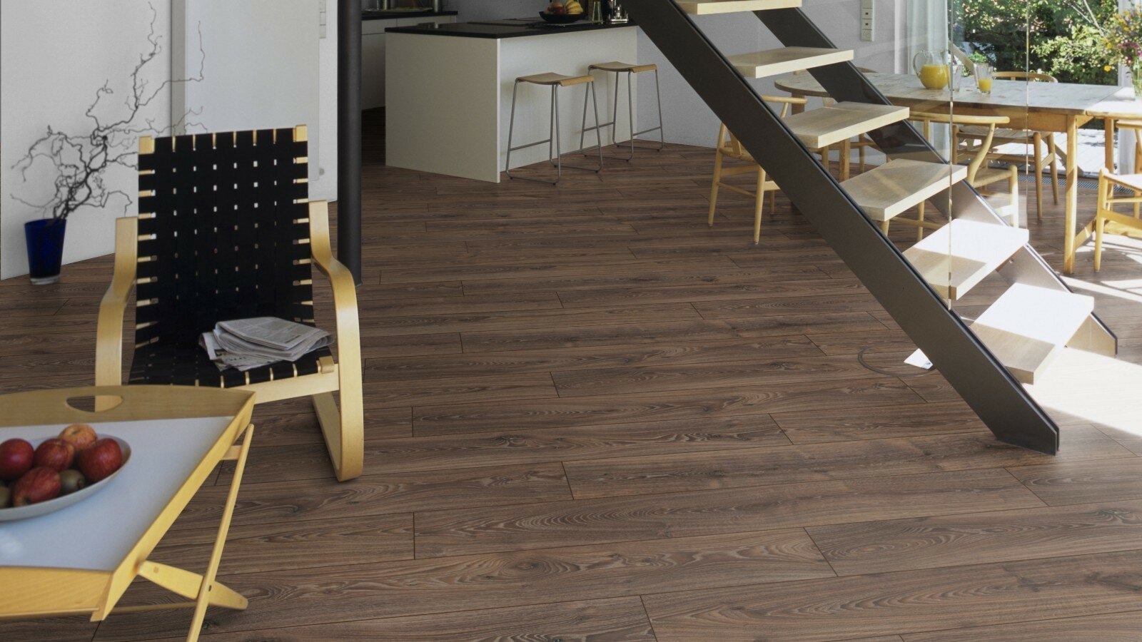 Выбрал вариант Kronotex Aqua Robusto. Интересный чёткий рисунок, что важно. Почитал отзывы, отмечают, что не выцветает со временем. Могу отметить, что он хорошо укладывается. На вид выглядит прочно. Но через месяц пользования могу сказать, что не продавливается под ногами и шкафами. Ногам комфортно ходить по ламинату |