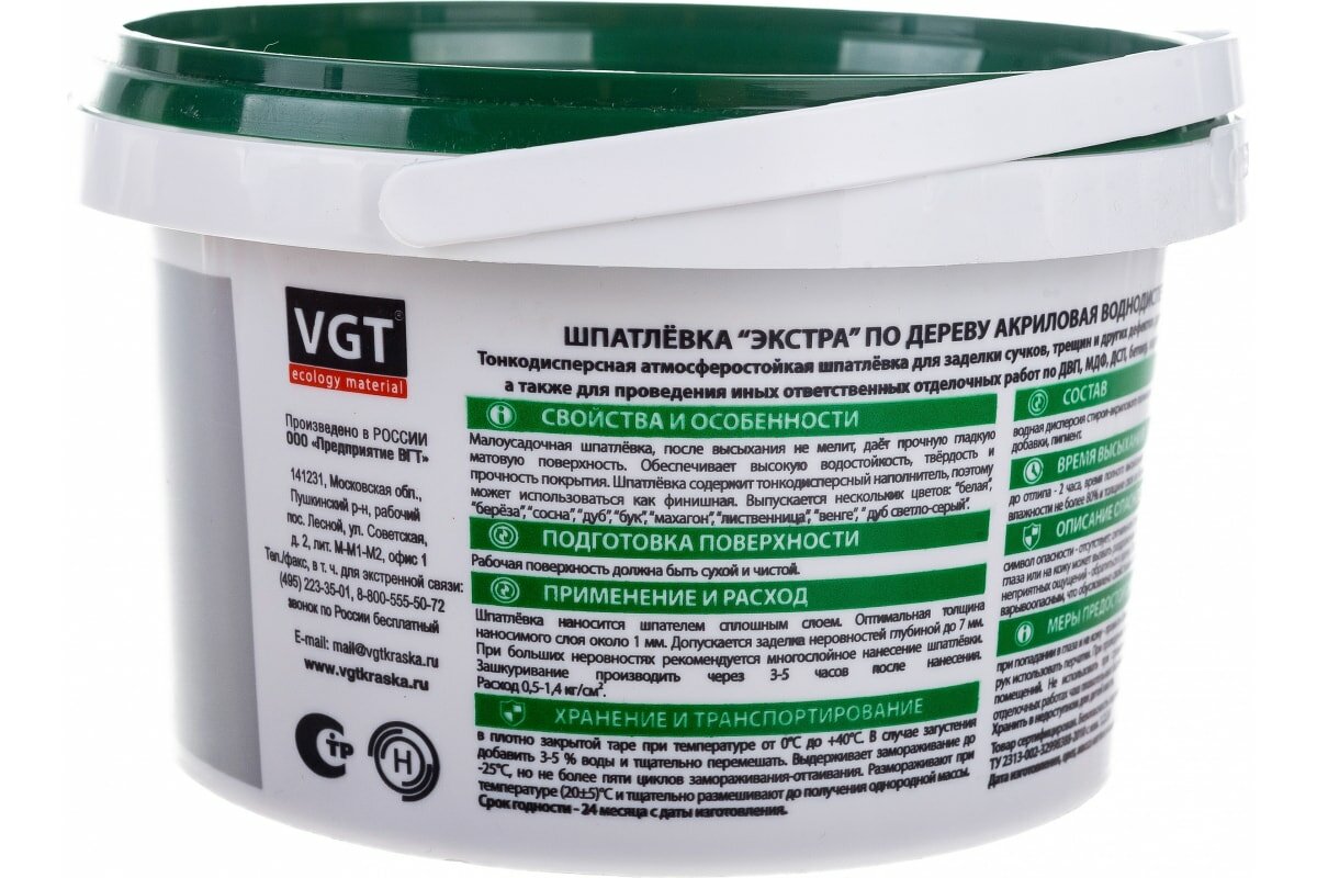 Шпатлевка по Дереву VGT Экстра 1кг Берёза Акриловая, Универсальная / ВГТ Экстра.