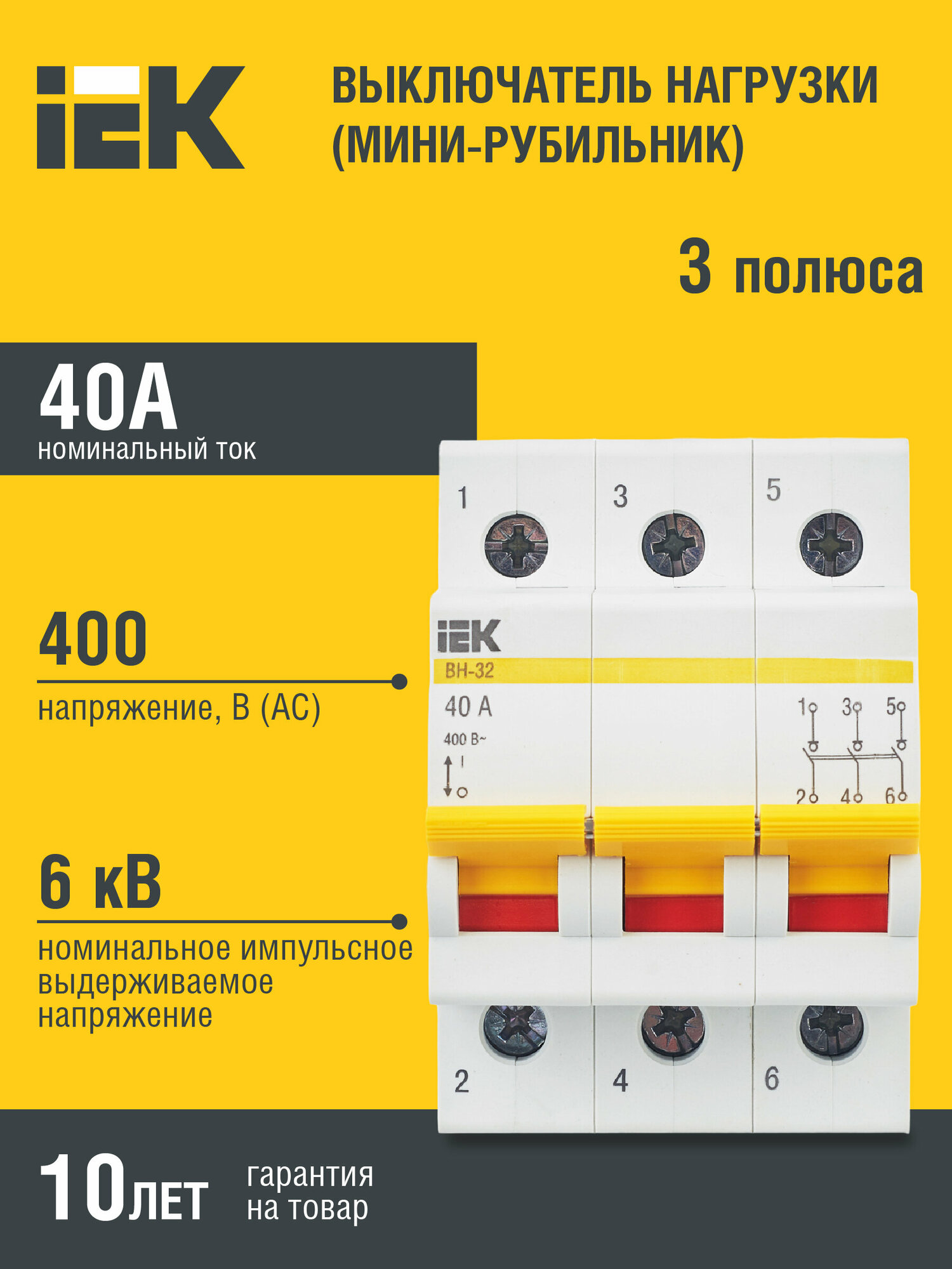 Выключатель нагрузки (мини-рубильник) ВН-32 3Р 40А IEK