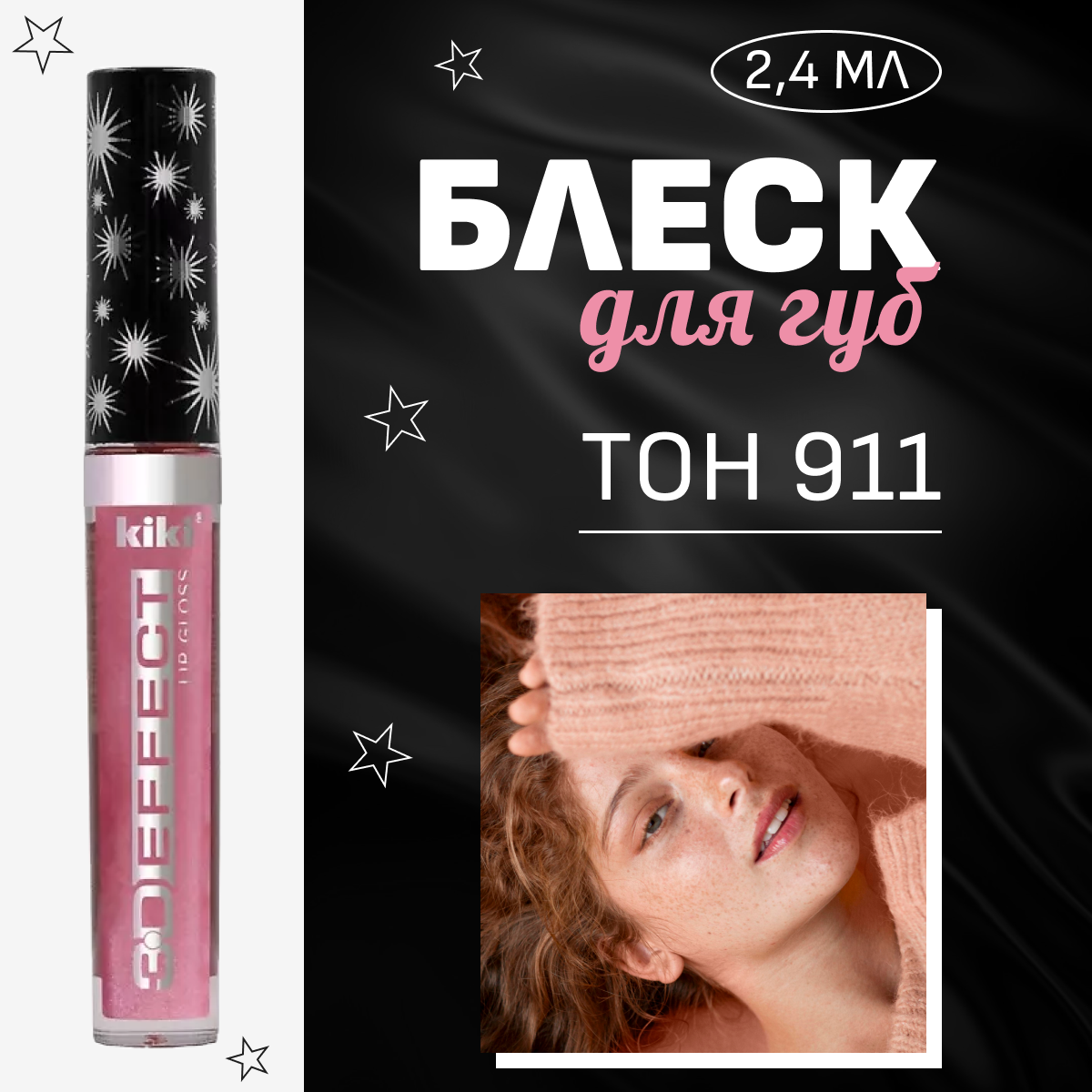 Блеск для губ kiki 3D EFFECT, придающий объем, тон 911 ягодный щербет, LIP GLOSS, глянцевый блеск с увеличением объема, не липкая структура, увлажняющая и стойкая жидкая помада