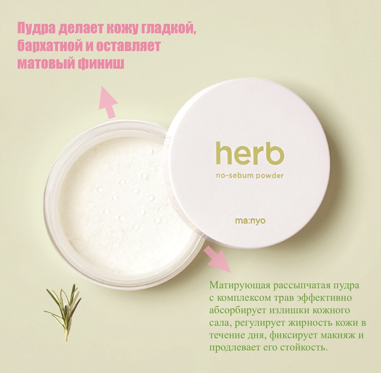 Сохранитьma:nyo Матирующая рассыпчатая пудра для лица с комплексом трав Herb Green No-Sebum Powder 6,5 гр интересное: