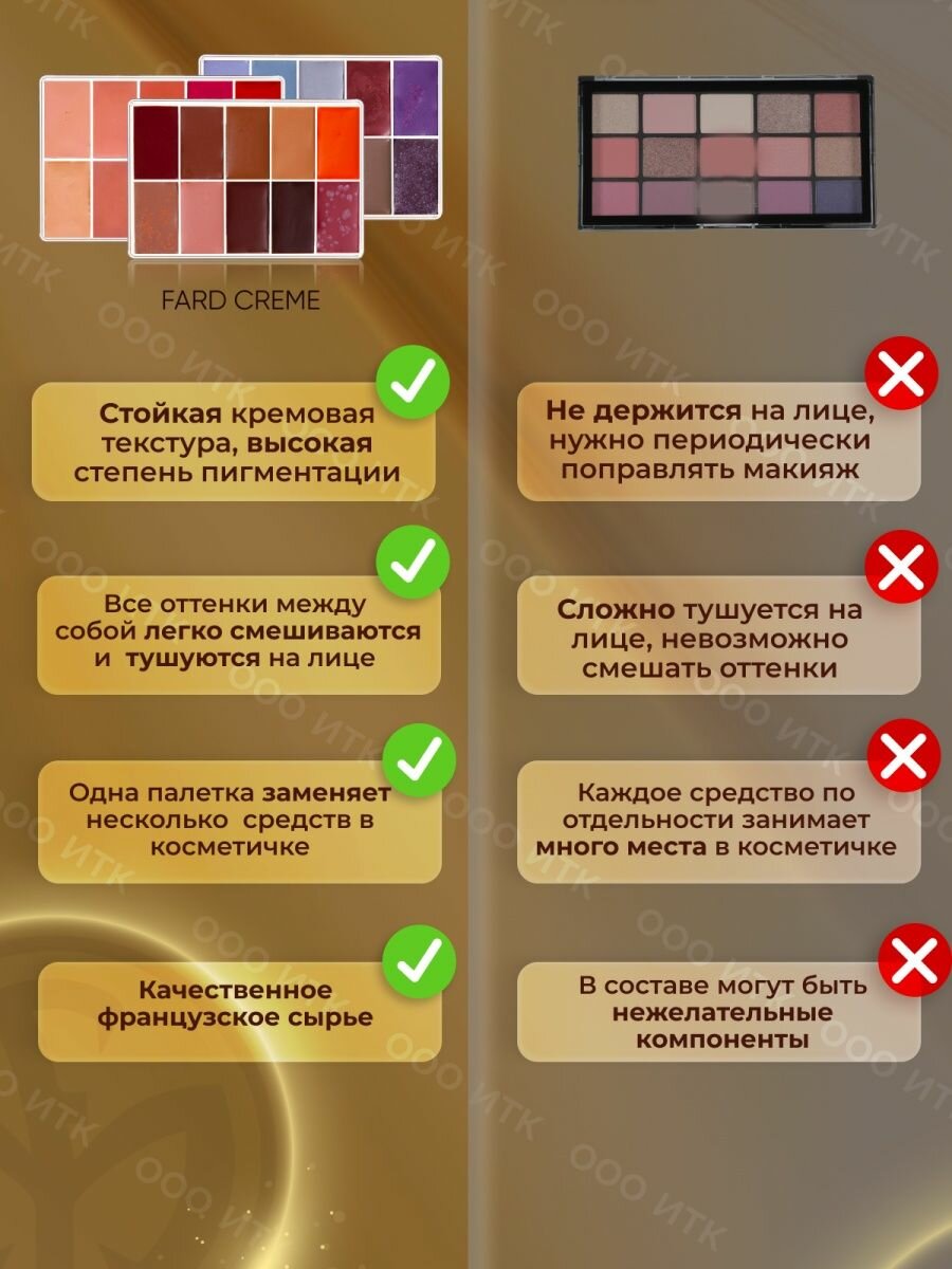 Палетка Fard Creme FOUNDATION корректор румяна помады тени