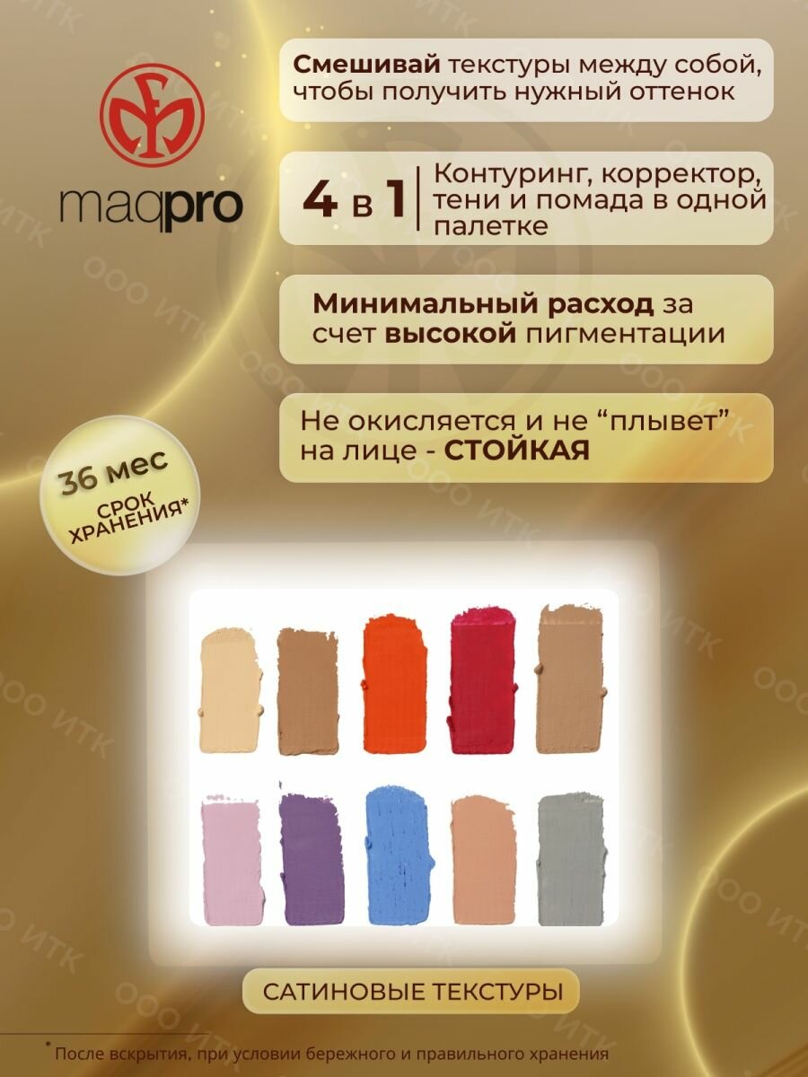 Тени кремовые в палитре 10 цветов АК106, MaqPro