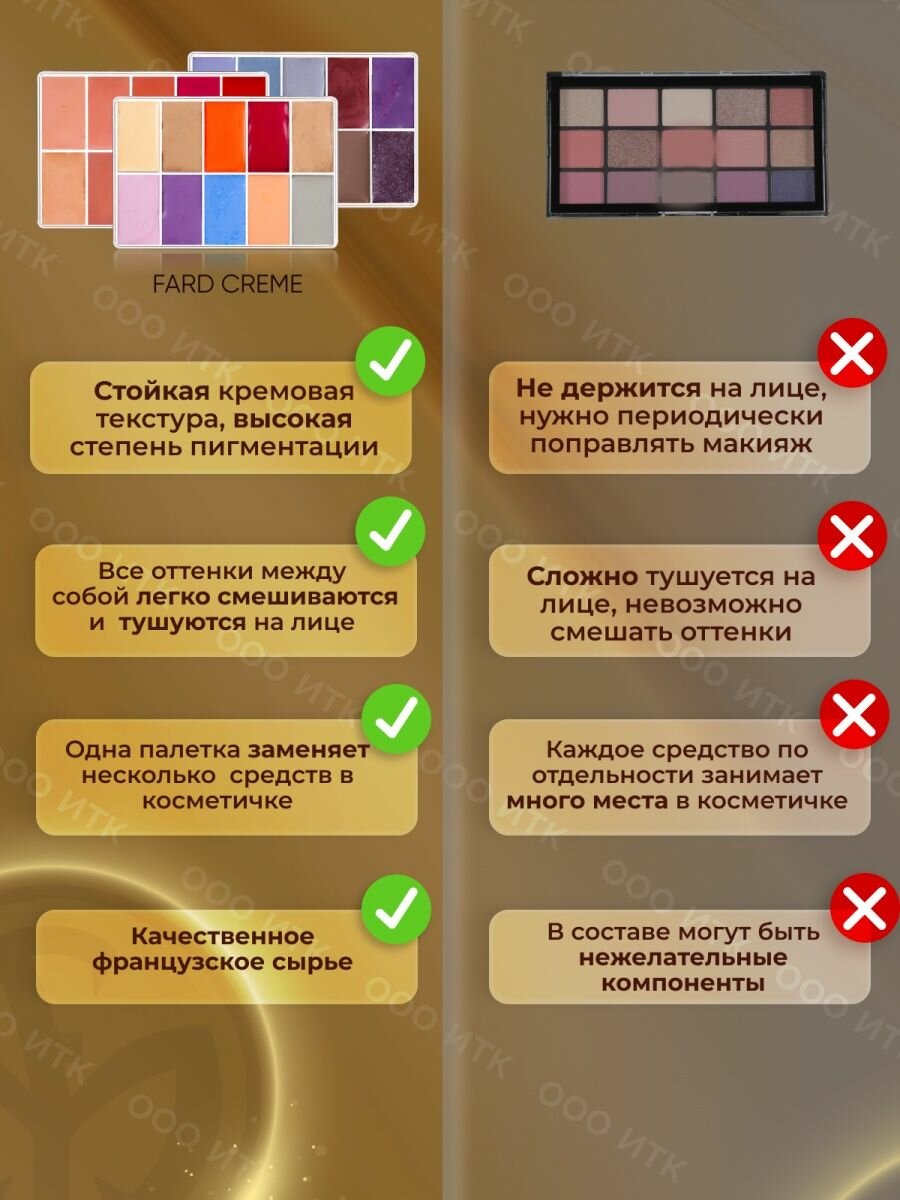 Палетка Fard Creme FOUNDATION корректор румяна помады тени