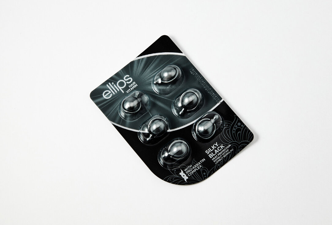 Масло для восстановления поврежденных темных, вьющихся волос Ellips Hair Vitamin Silky Black. Капсулы 6шт х 1мл