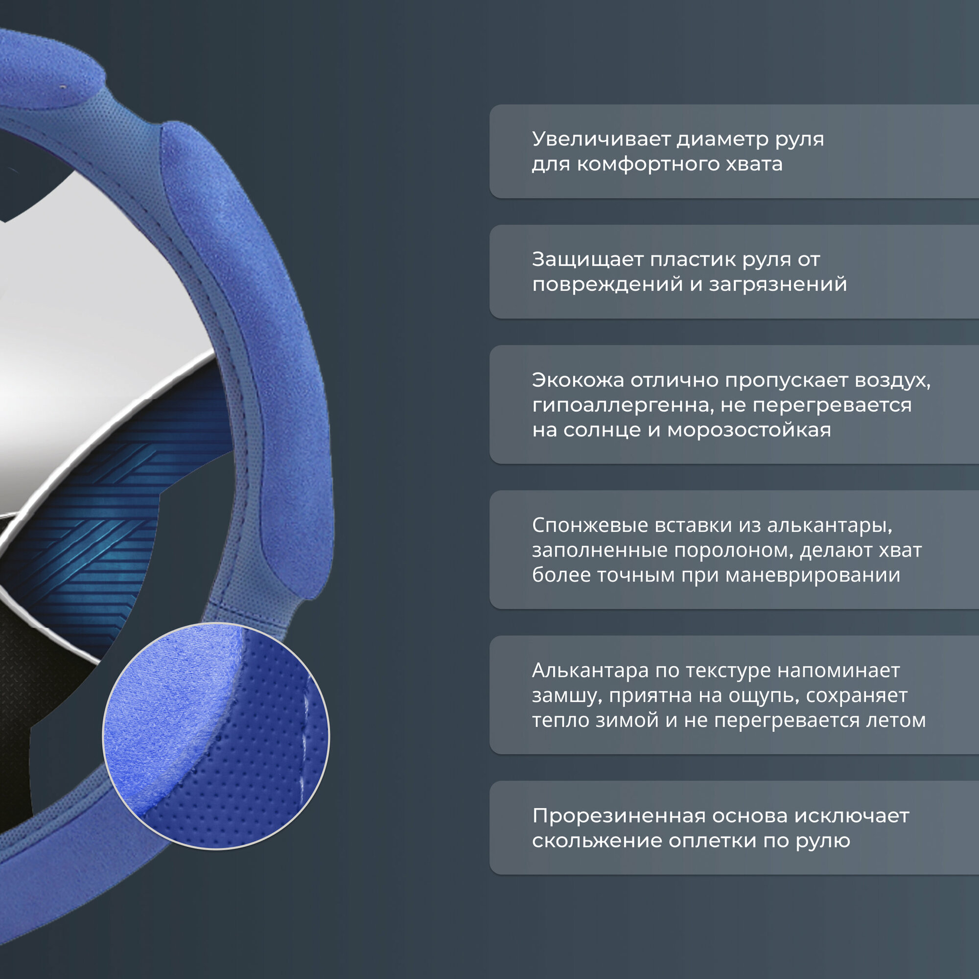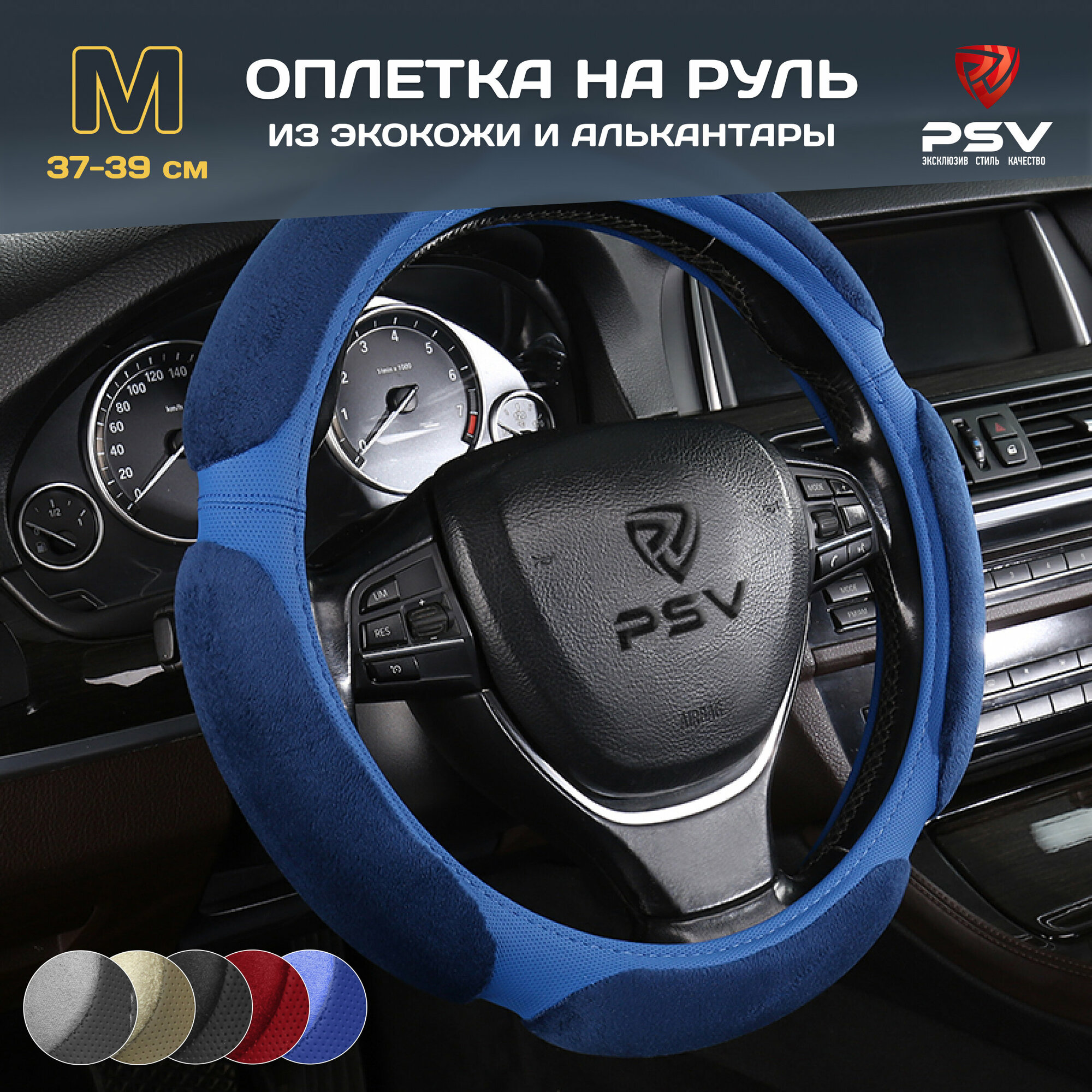 Оплетка на руль PSV RACE SUPER (Черно-Синий) M, экокожа + алькантара