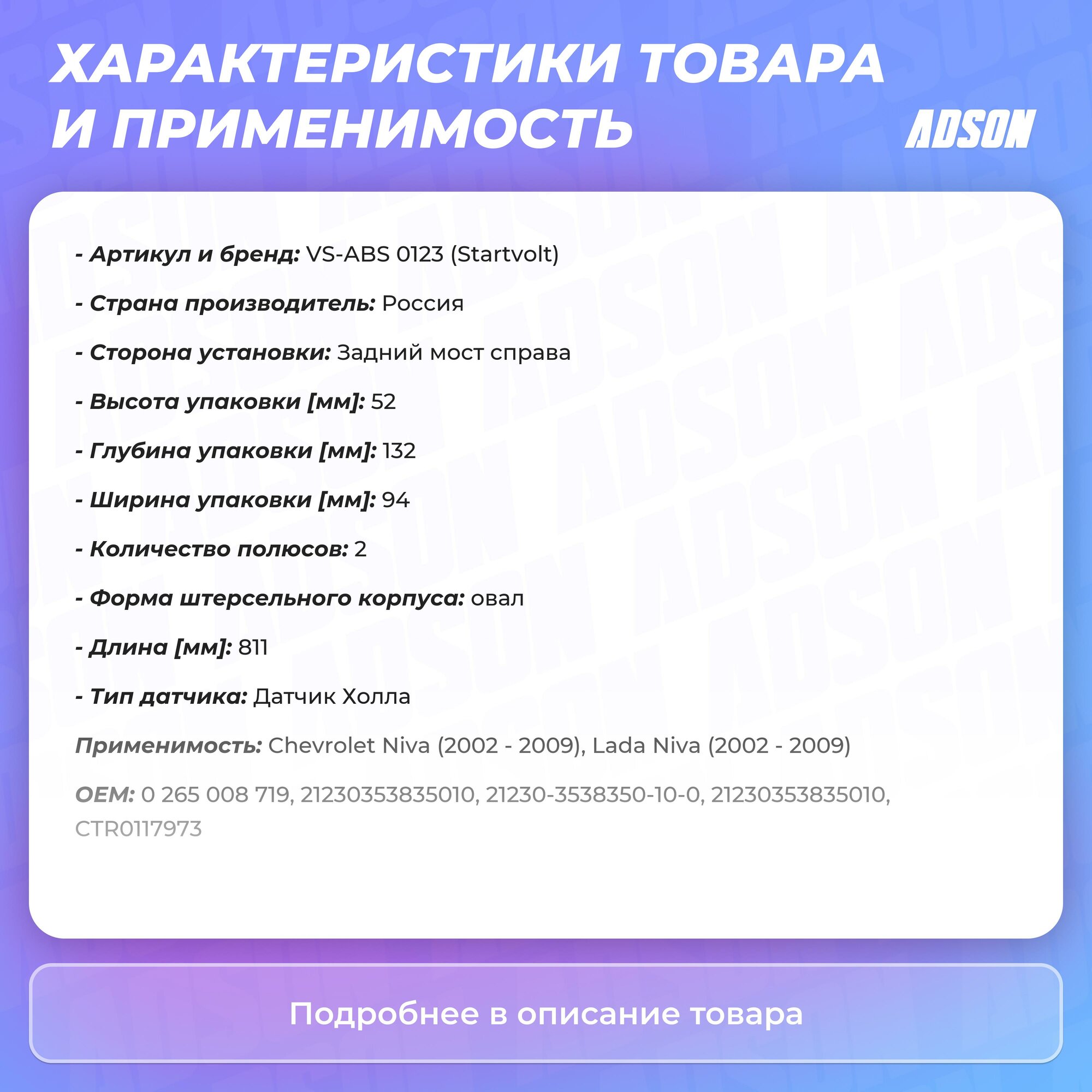Датчик Abs Задний R Chevrolet Niva /Нов.обр. Startvolt Vs-Abs 0123 STARTVOLT арт. VS-ABS 0123