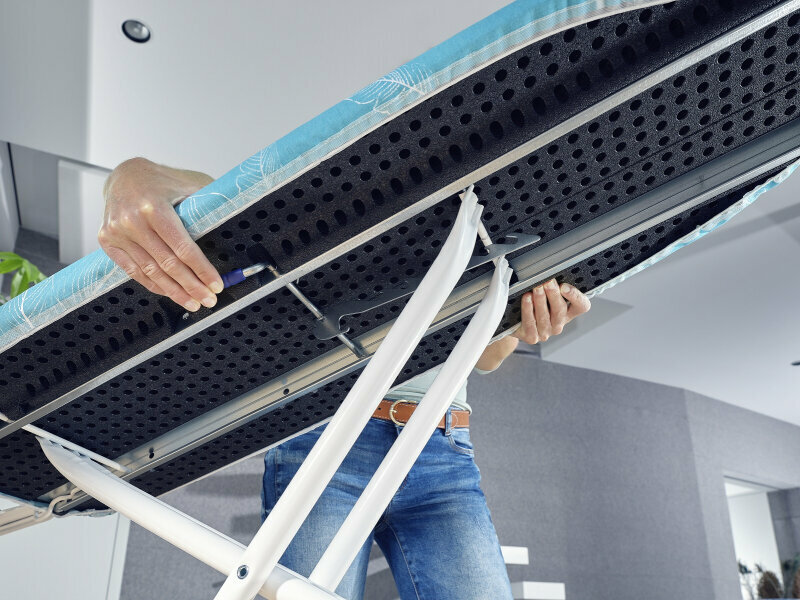Ровная поверхность - нет следов металлической сетки при глажке как у других досок. Очень устойчивая и при этом для этого класса гладильных досок достаточно легкая. Эргономичная, удобная в использовании.