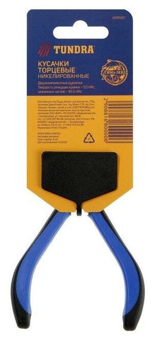 Купить Кусачки торцевые тундра mini, никелированные, двухкомпонентные рукоятки, 105 мм 881680