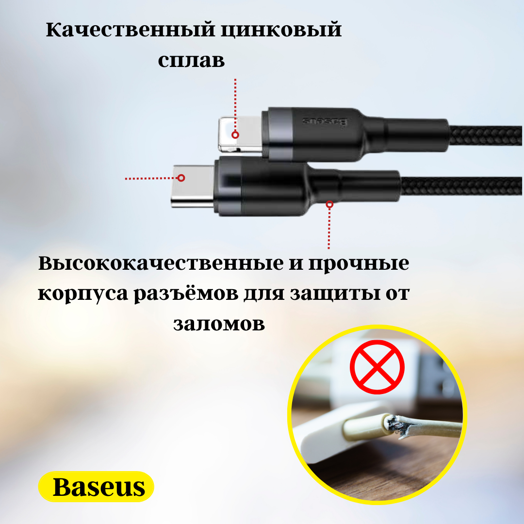 Кабель 1м USB Type-C (m) - Lightning (m) Baseus Cafule Cable - Черный/Серый, для apple, iphone