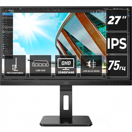 Монитор AOC 27" Q27P2Q 2560x1440 IPS WLED 75Гц 4ms VGA HDMI DisplayPort
