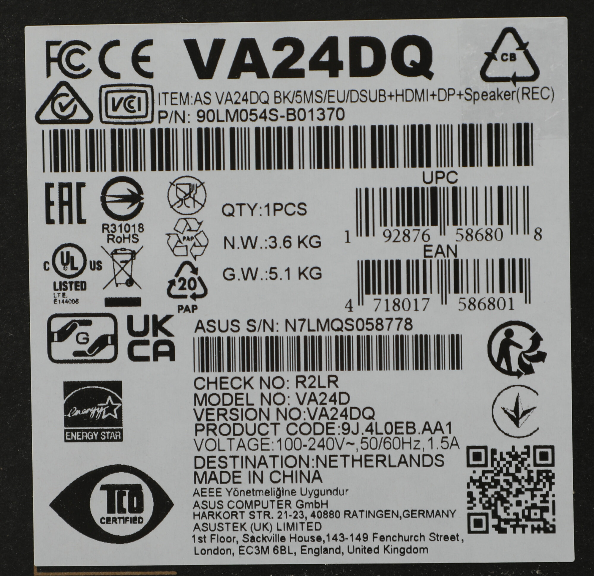 Монитор ASUS VA24DQ-NC3-001