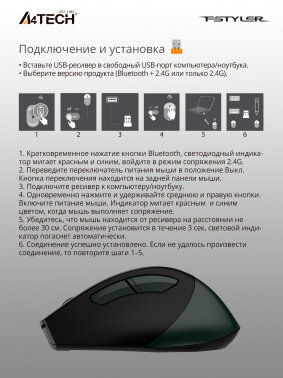 СохранитьМышь беспроводная A4Tech Fstyler FB35, 2000 dpi, Bluetooth/USB, зеленый/черный интересное: