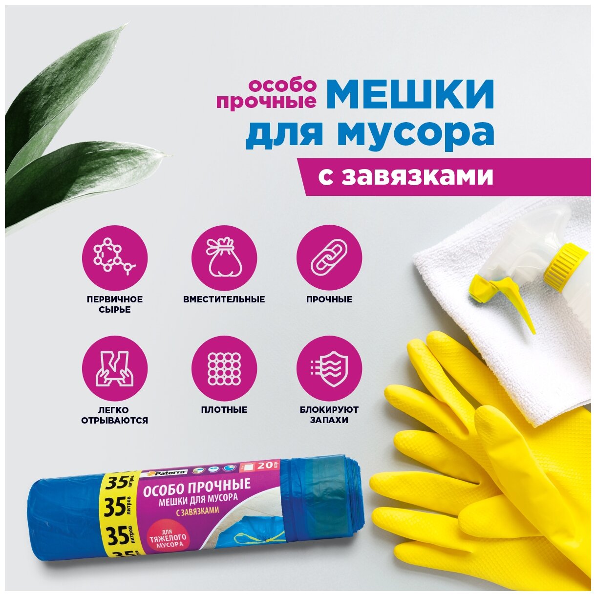 Ниже Вы можете прочитать отзывы на Мешок для мусора "особо прочные" 35 л, с завязками, PATERRA, 11 мкм, ознакомится с подробными характеристиками, посмотреть интересные обзоры и фотографии на Мешок для мусора "особо прочные" 35 л, с завязками, PATERRA, 11 мкм.