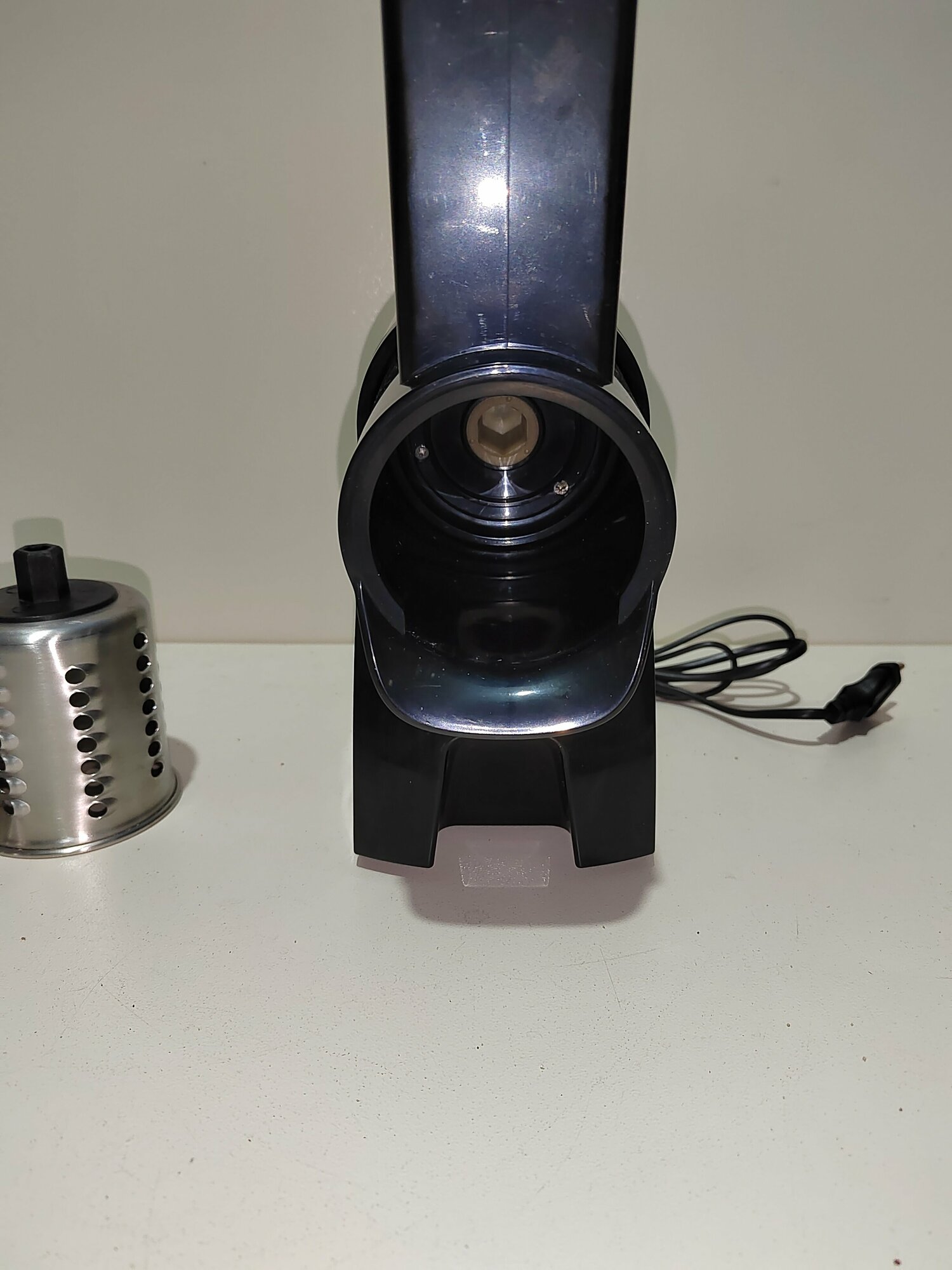 | Плюсы: | Красивый дизайн, кнопка работает как выключатель. Лёгкая смена терок (ножей). Достаточно хорошая мощность двигателя. |