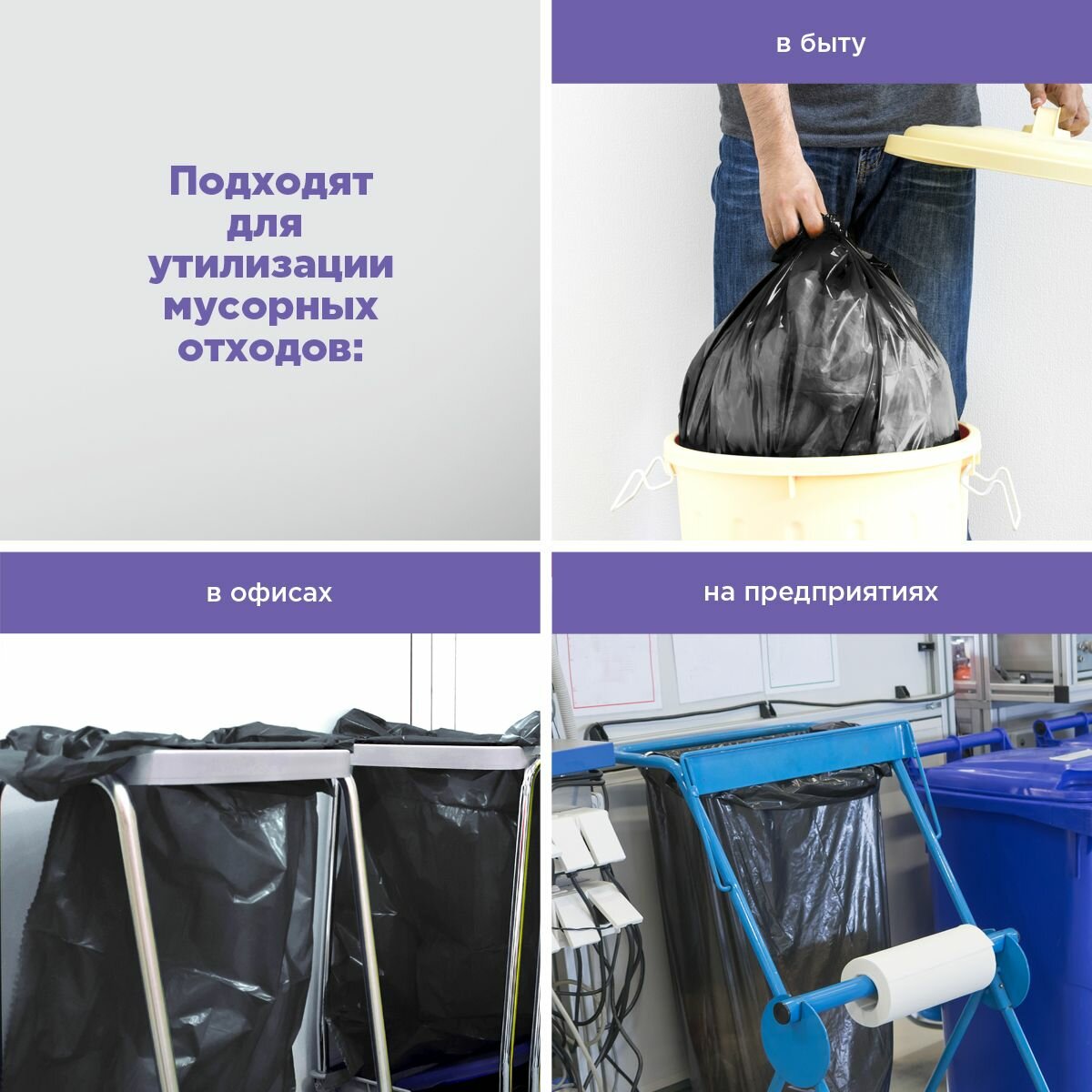 Мешки для мусора 90 * 130см (250 л - 50 мкм) ПВД AVIORA чёрные, рулон в бум. уп. интересное: