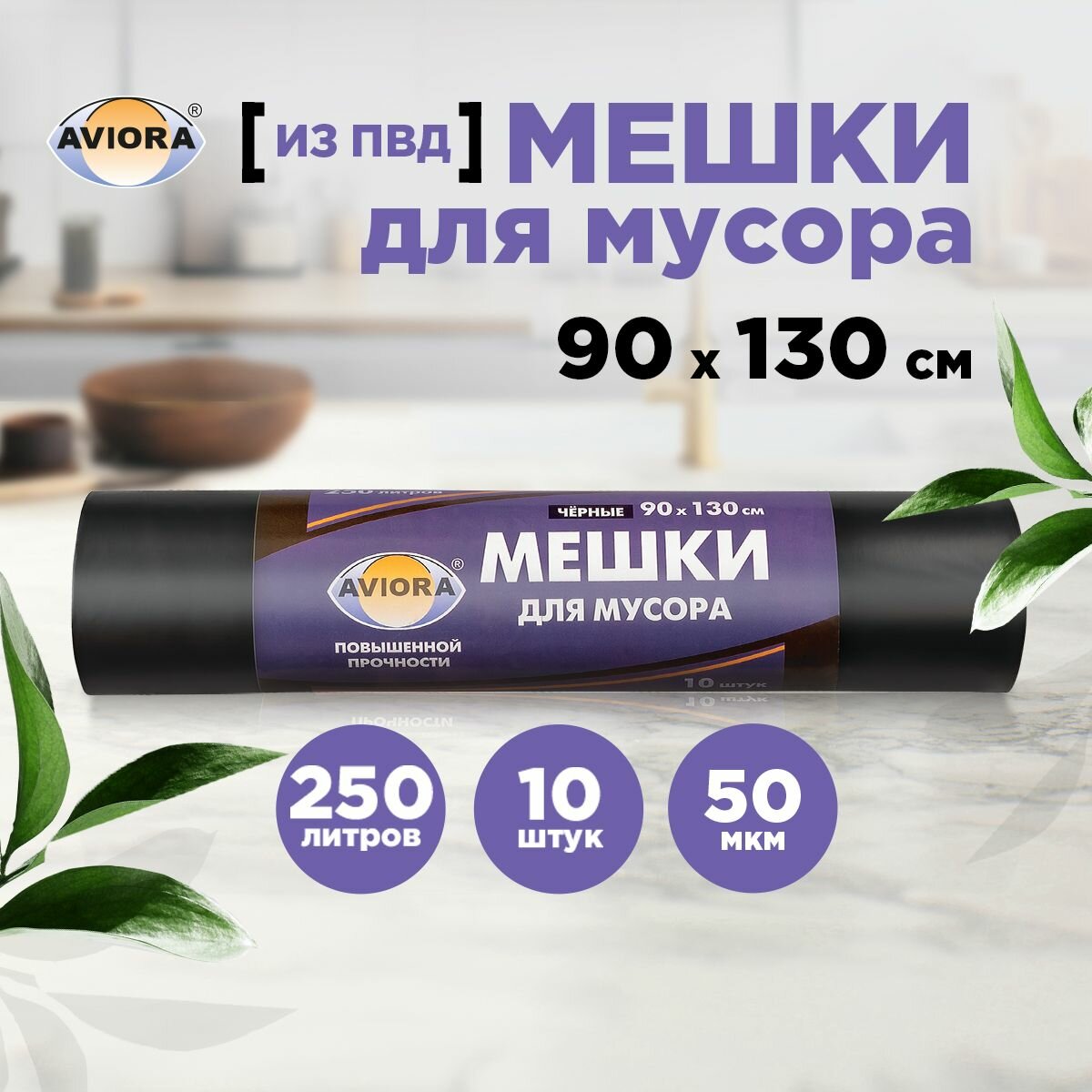 Купить Мешки для мусора 90 * 130см (250 л - 50 мкм) ПВД AVIORA чёрные, рулон в бум. уп.