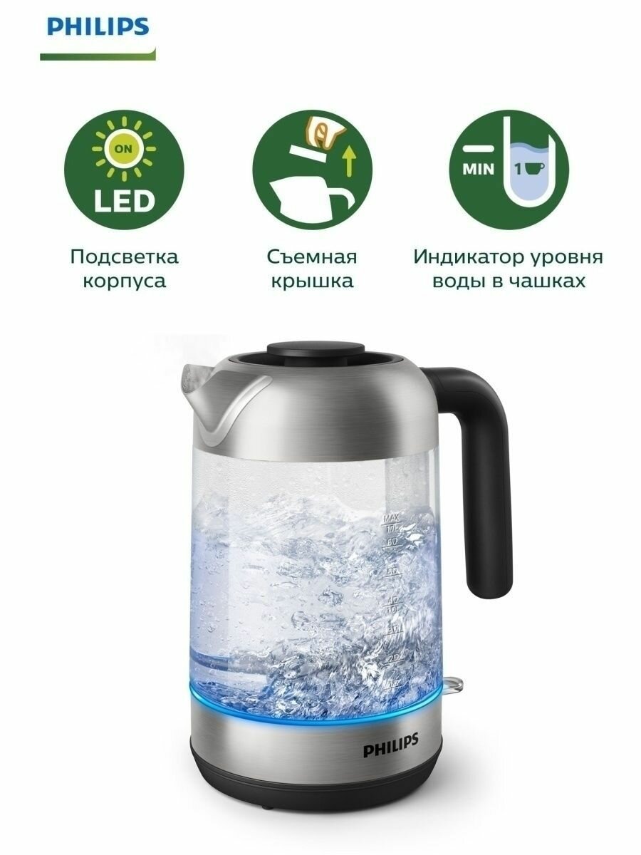 Чайник Philips HD9339, серебристый/черный/прозрачный