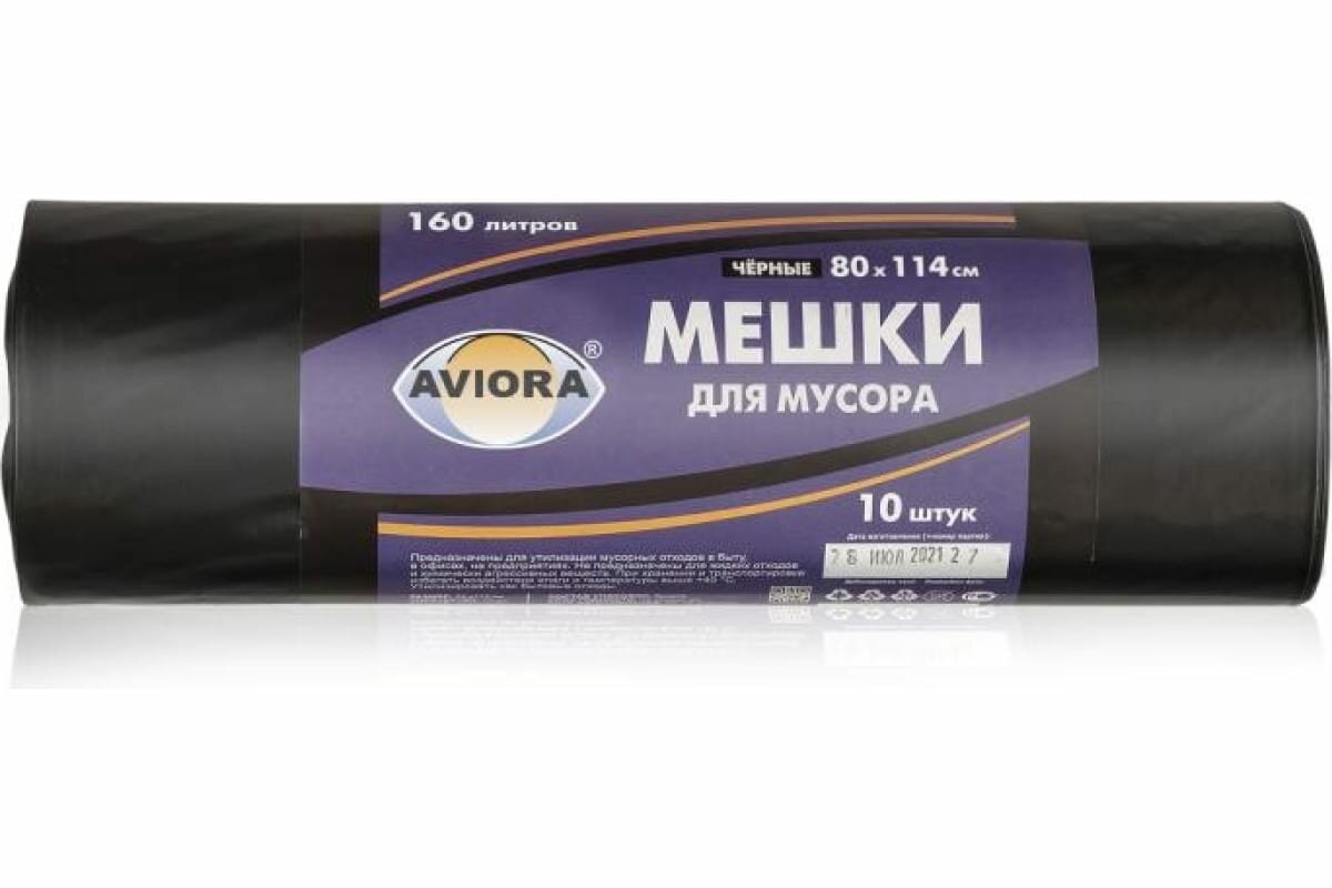 Мешки для мусора 80 * 114см (160 л - 30 мкм) ПВД AVIORA чёрные, рулон в бум. уп. интересное: