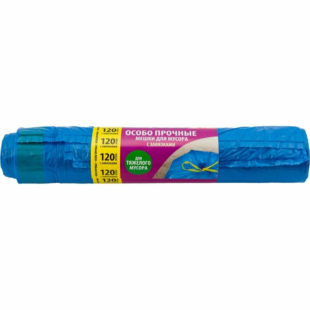 Мешки для мусора Paterra, объем 120 л с завязками, цвет синий, в рулоне 10 шт.
