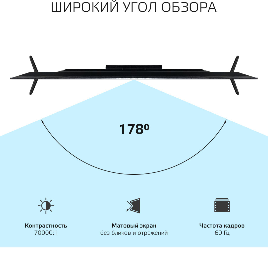 | Плюсы: | Хорошее изображение, тонкие рамки, смарт тв, проводное и беспроводное подключение интернета, 12 ватт звука, встроенный медиа плеер и цифровой тюнер DVBT2 |