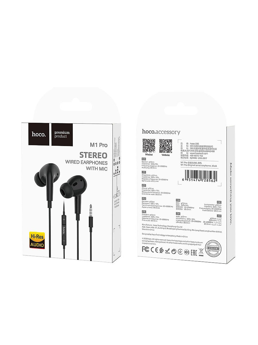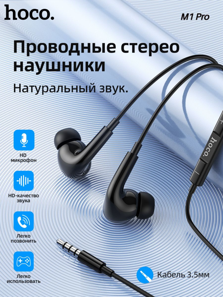 Наушники HOCO M1 Pro Original, Jack 3.5mm, 1.2 м, черный, контроллер с микрофоном