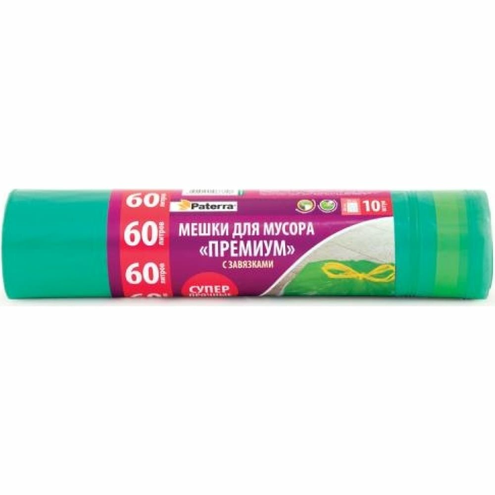Мешки для мусора PREMIUM (10 шт; 60 л) с завязками зеленые PATERRA 106-008