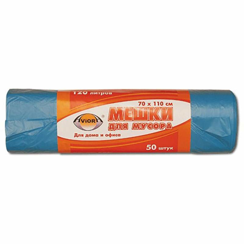 Пакеты для мусора ПНД синие (120 л, 18 мкм, 50 шт.) AVIORA 106-022