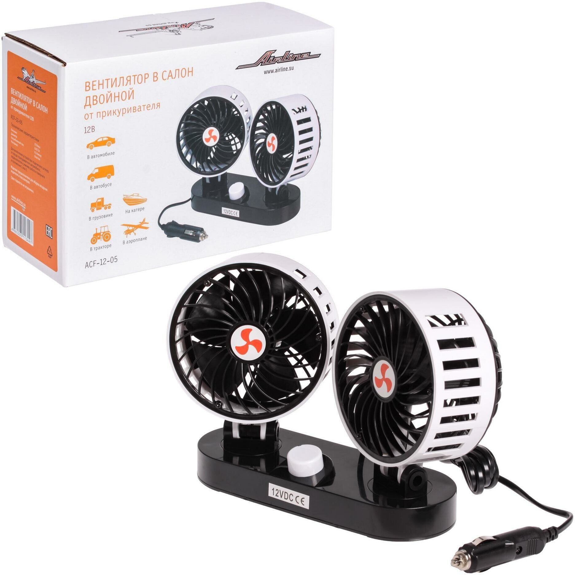 AIRLINE Вентилятор в салон двойной 2х12см 12В пластик (ACF-12-05) 1шт