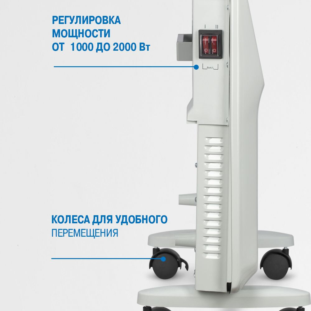 Конвектор VITEK VT-2177, 2 кВт, 25 м², колеса в комплекте, белый
