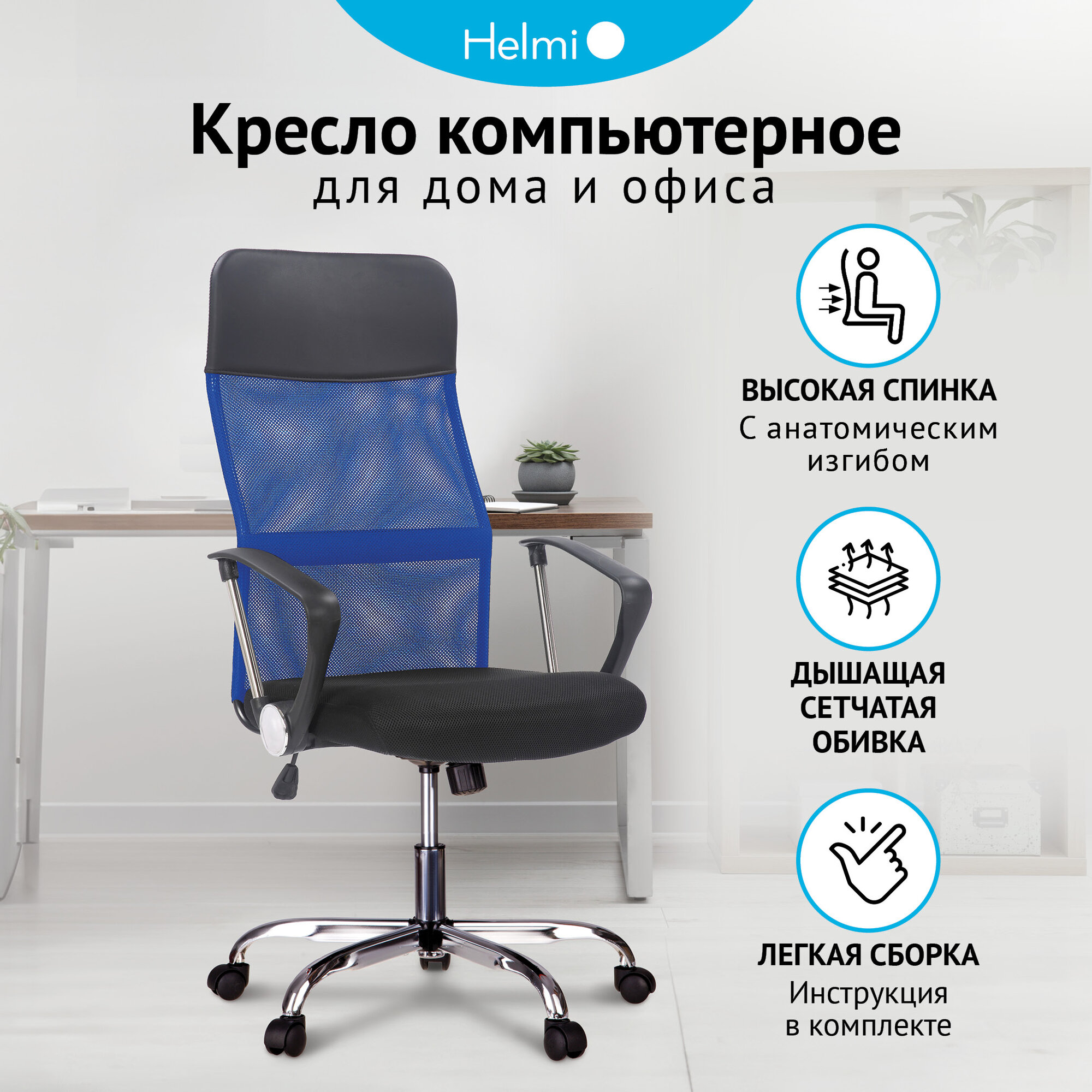 Кресло руководителя Helmi HL-E16 «Content», ткань/сетка/экокожа черная/синяя, хром