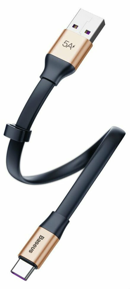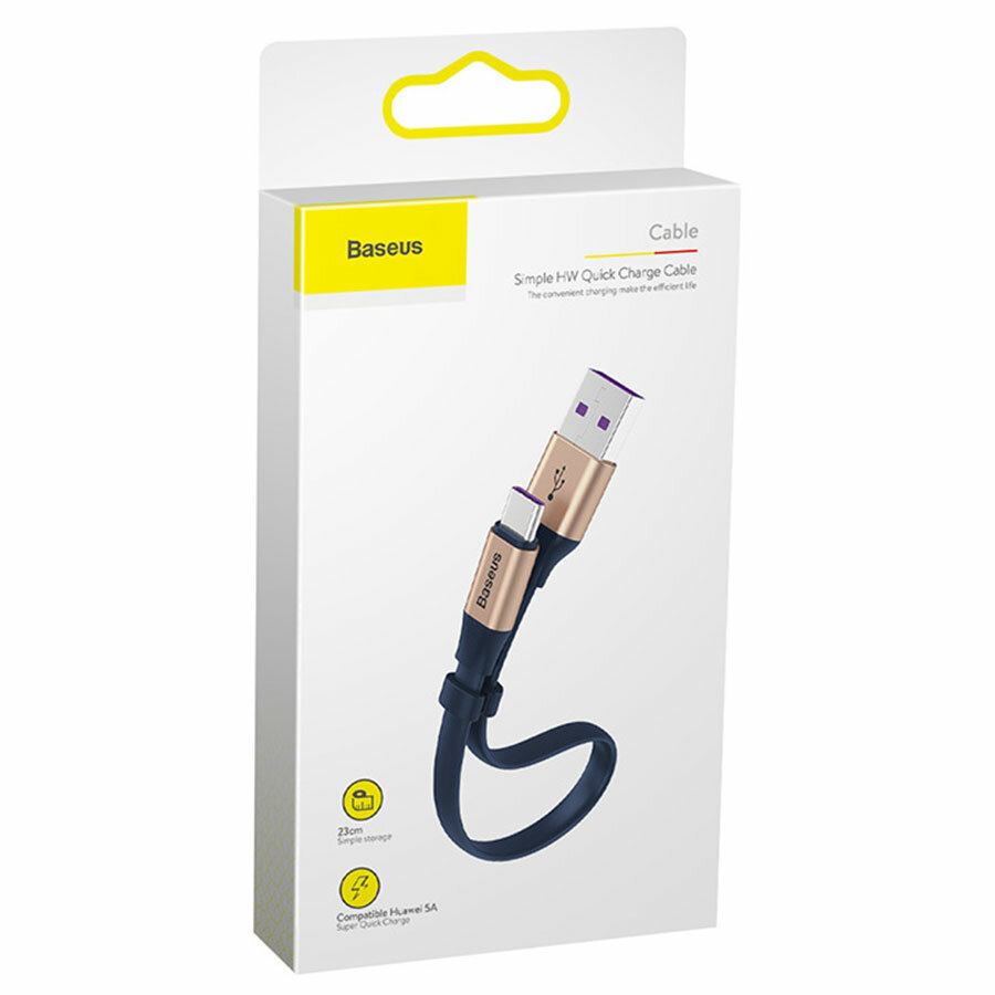 Кабель USB BASEUS Simple HW, USB - Type-C, 5А, 23 см, золотой+синий