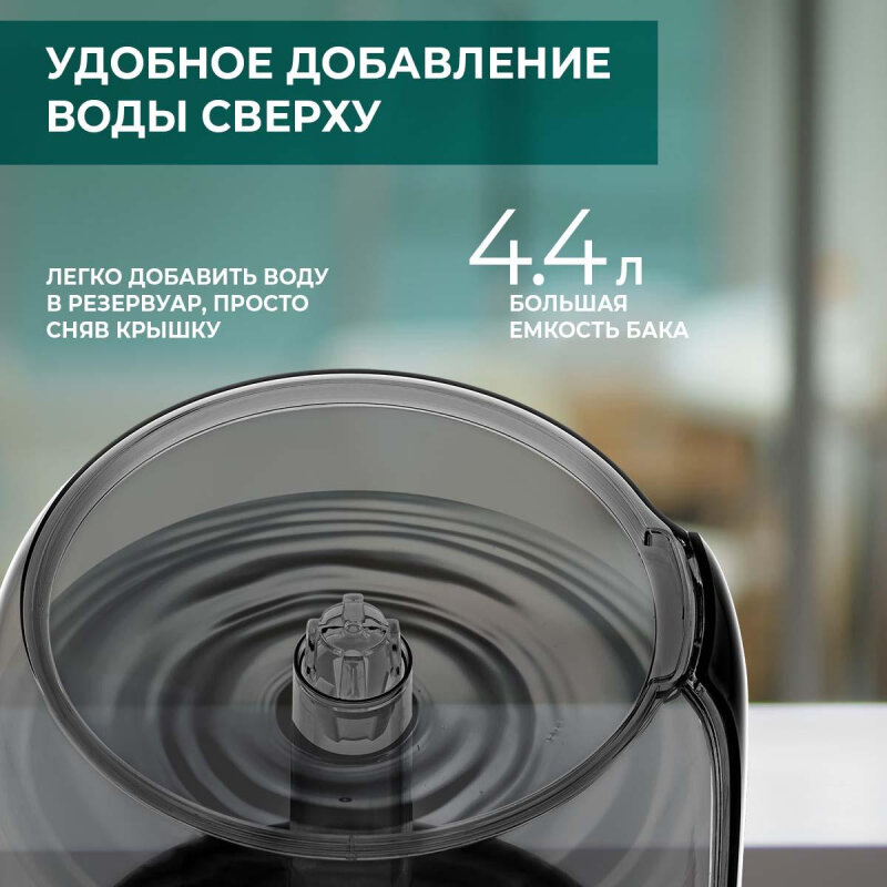 | Плюсы: | Верхний долив и нижняя арома-капсула, объем 4.4 литра хорошо подходит для средней и даже большой комнаты |