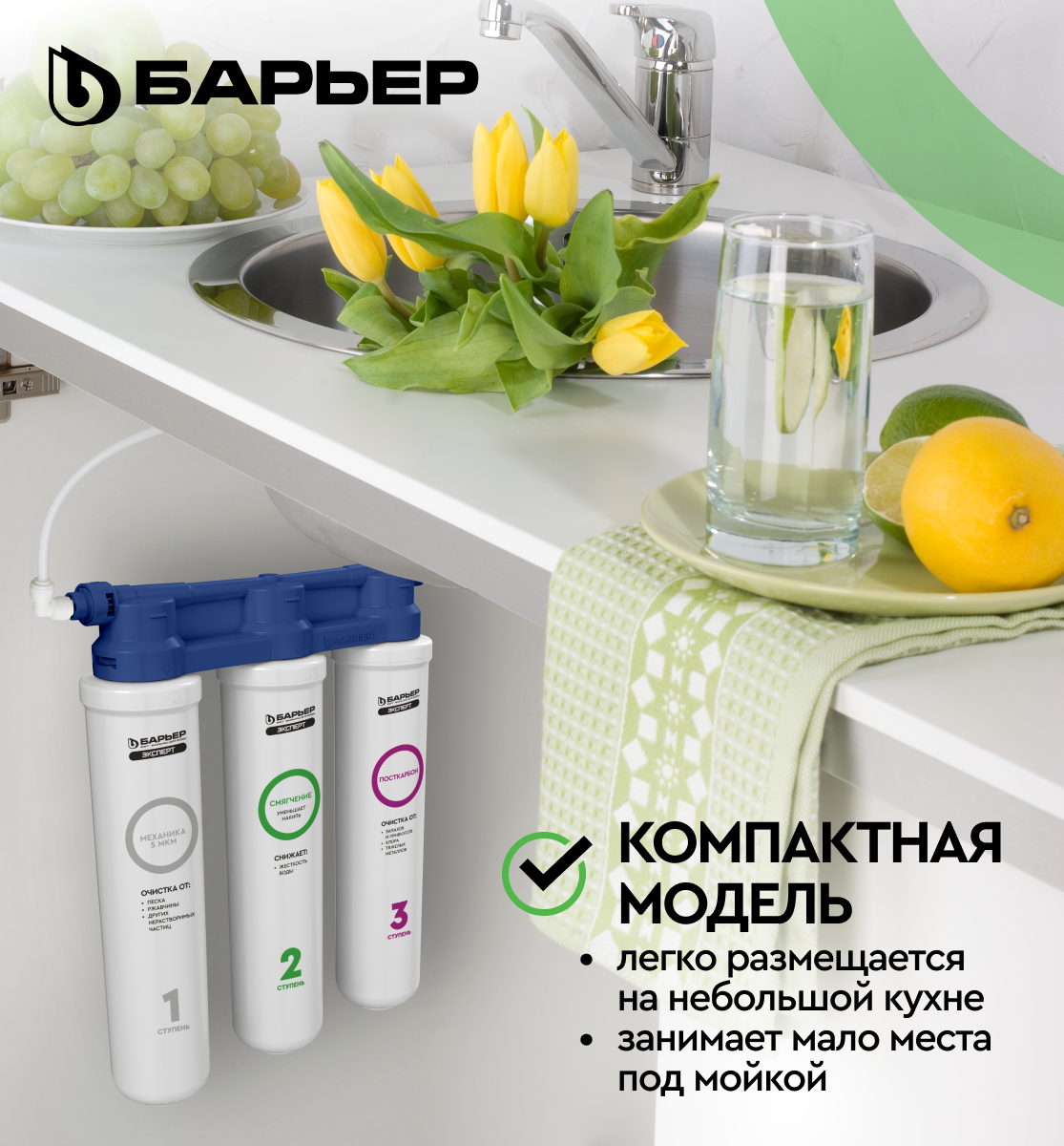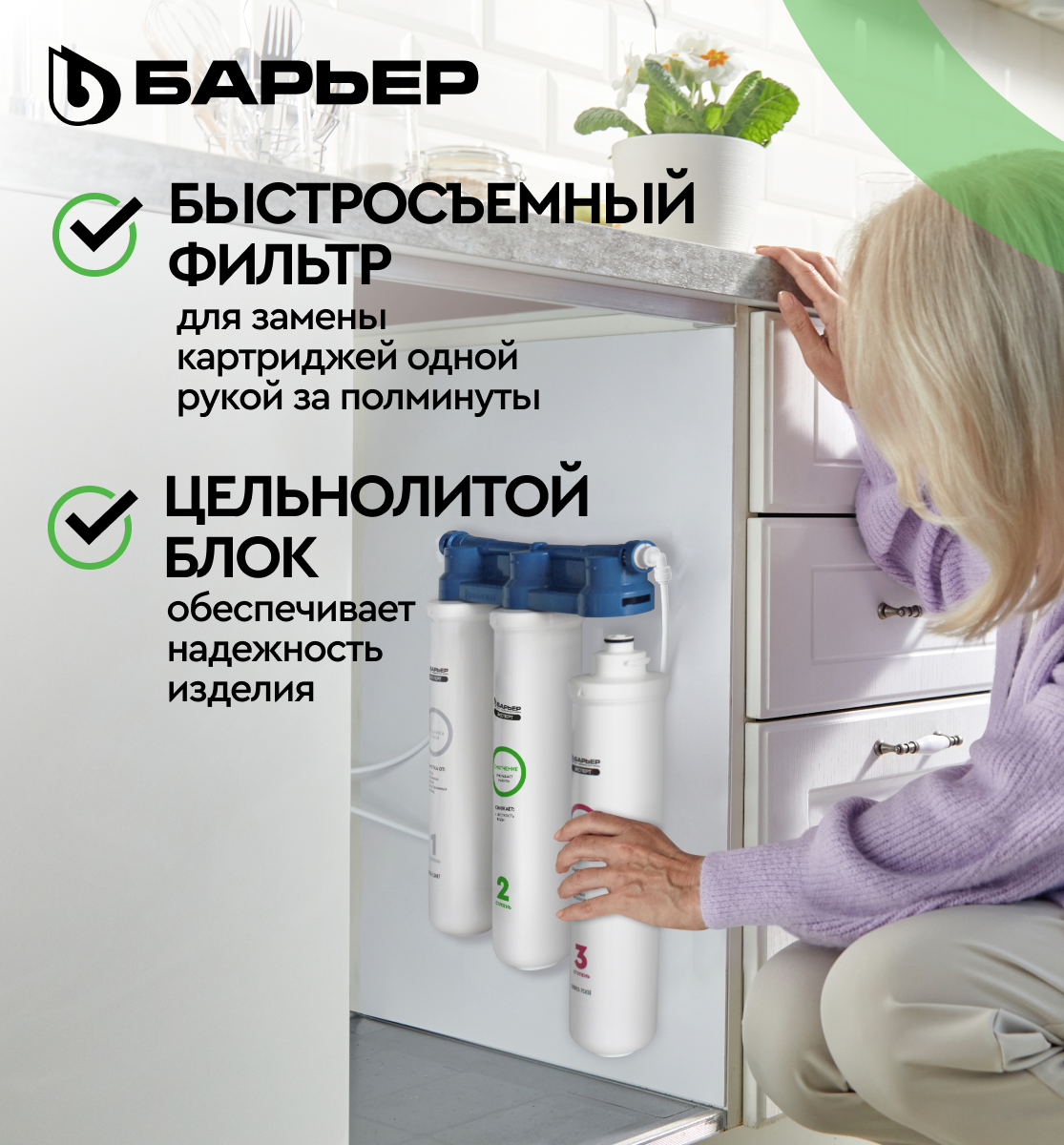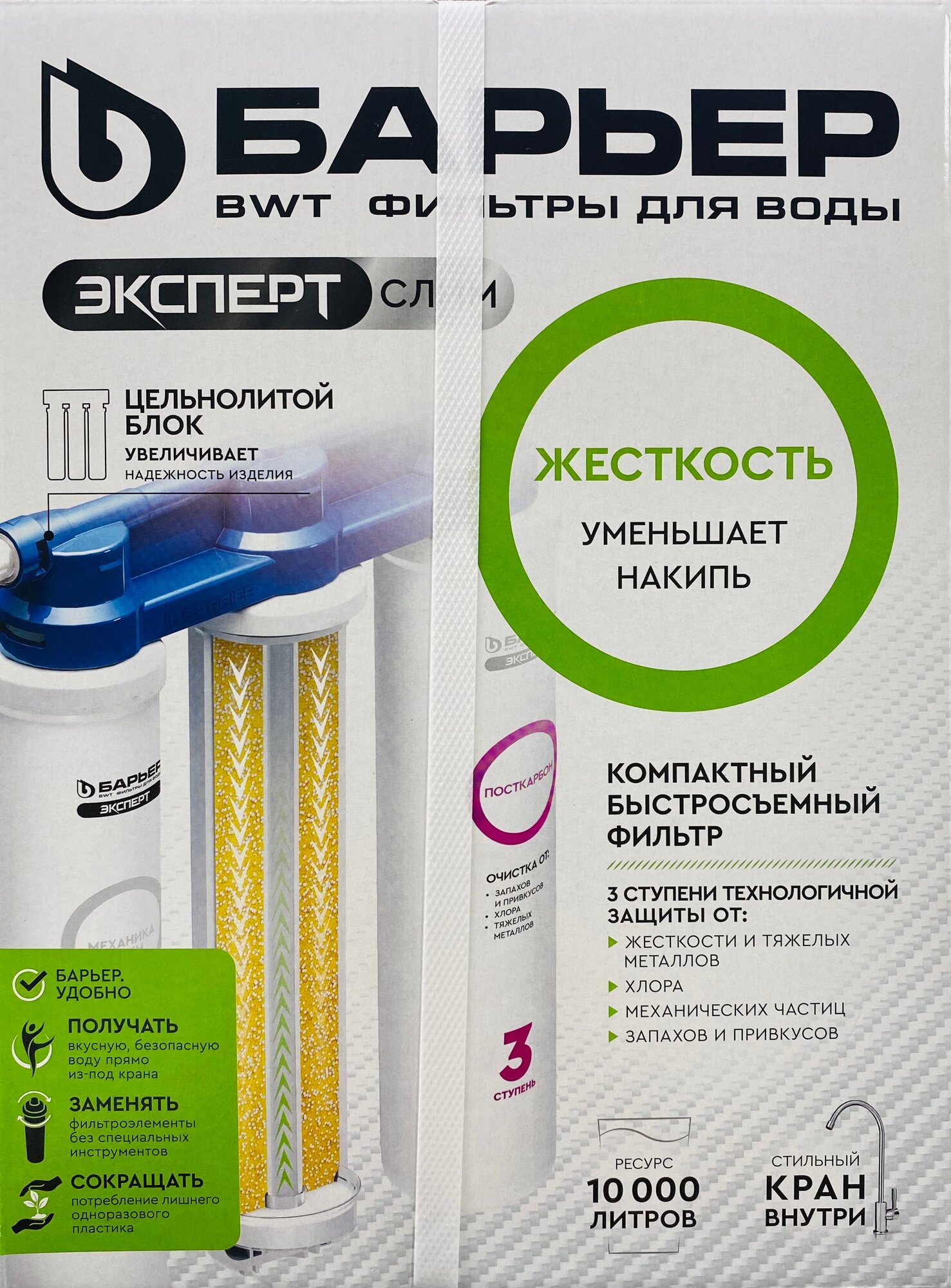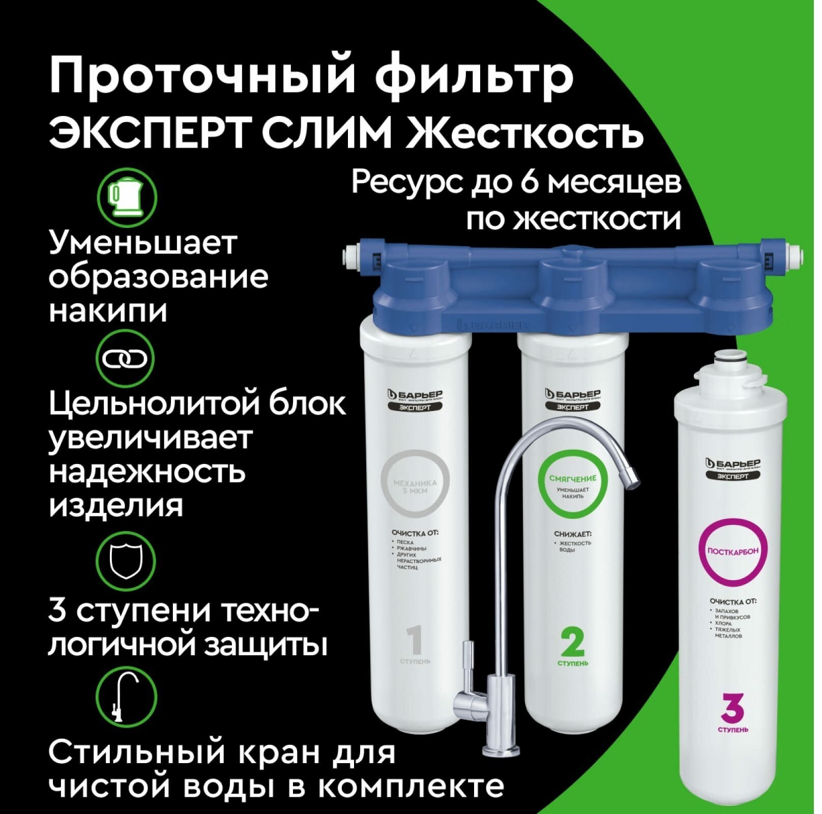 Трехступенчатый быстросъемный фильтр под мойку для очистки воды Барьер эксперт слим Жесткость интересное: