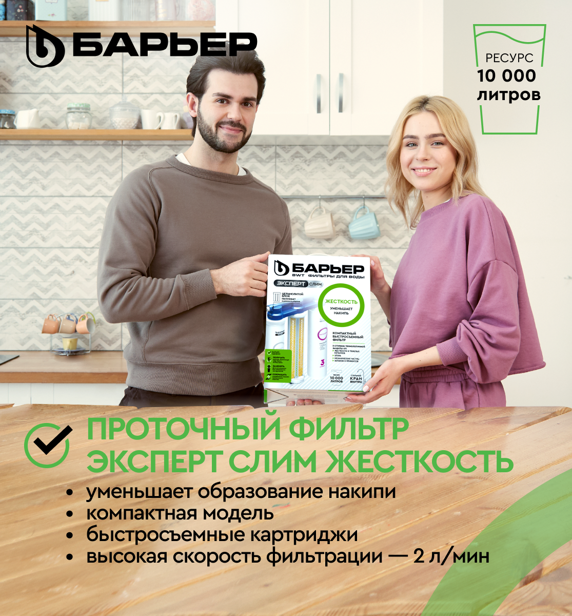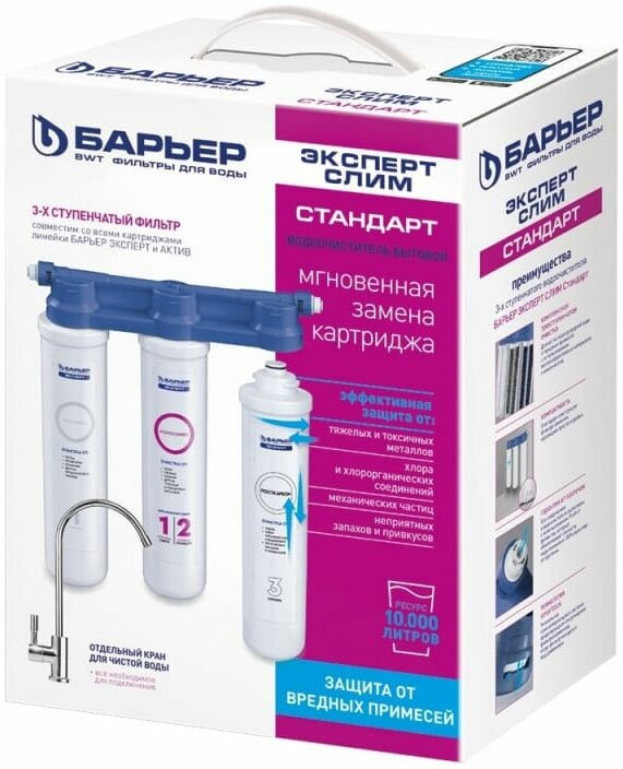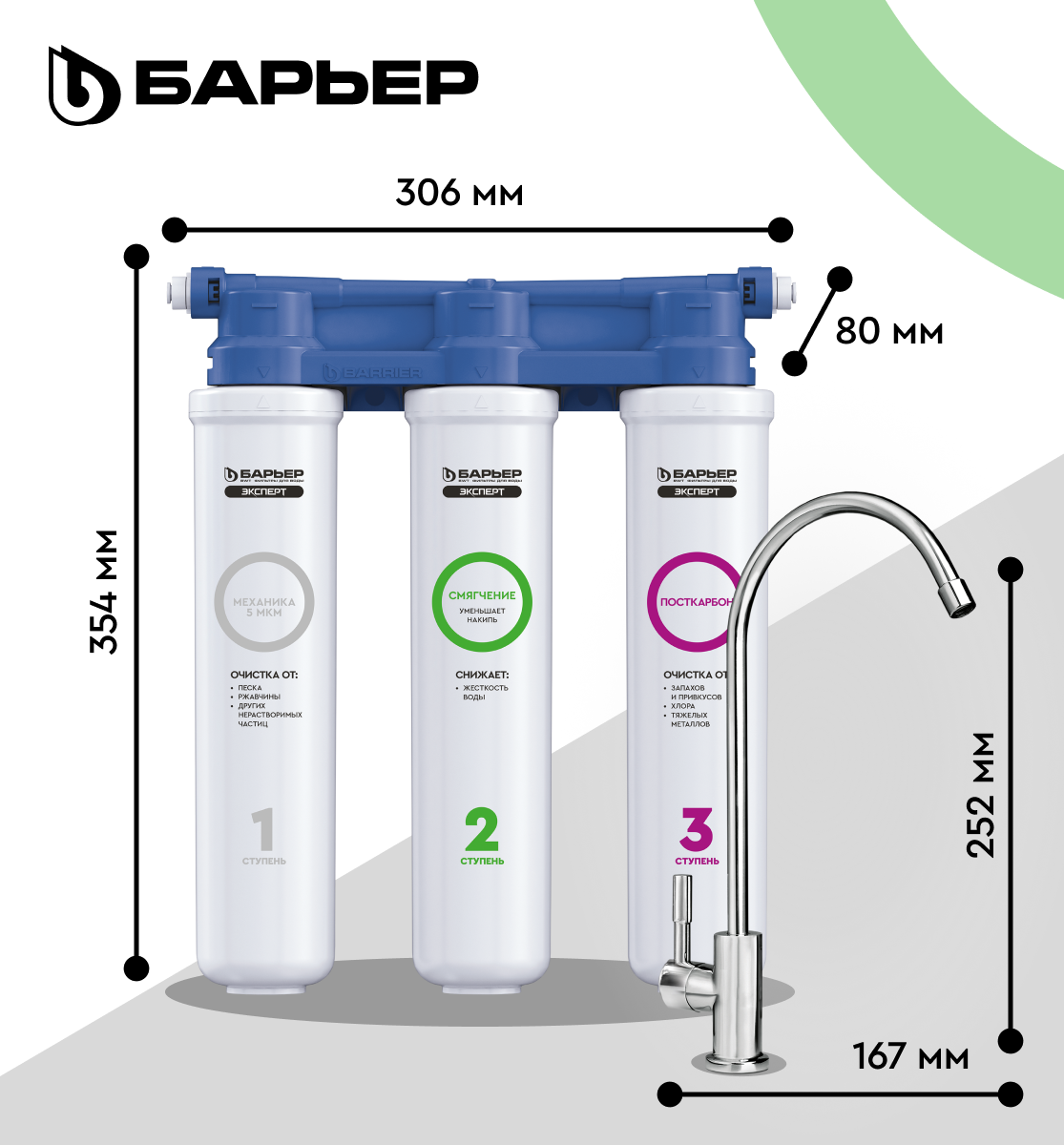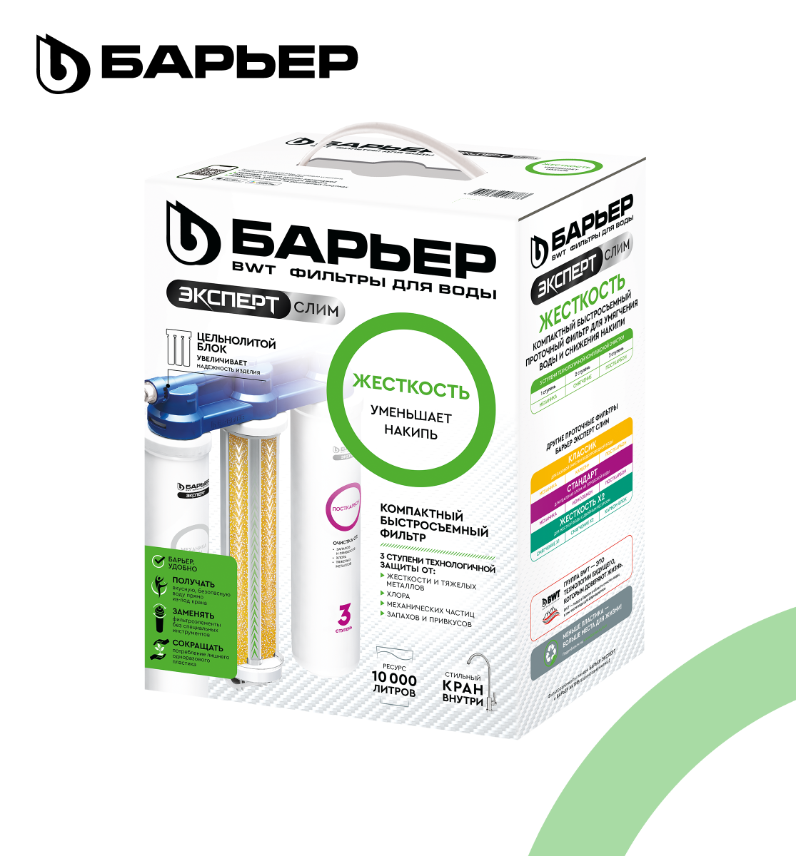 Трехступенчатый быстросъемный фильтр под мойку для очистки воды Барьер эксперт слим Жесткость интересное: