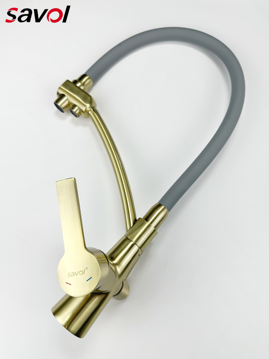 Смеситель Savol S-L1805B-04 для кухни, с подключением к фильтру, цвет золото / серый