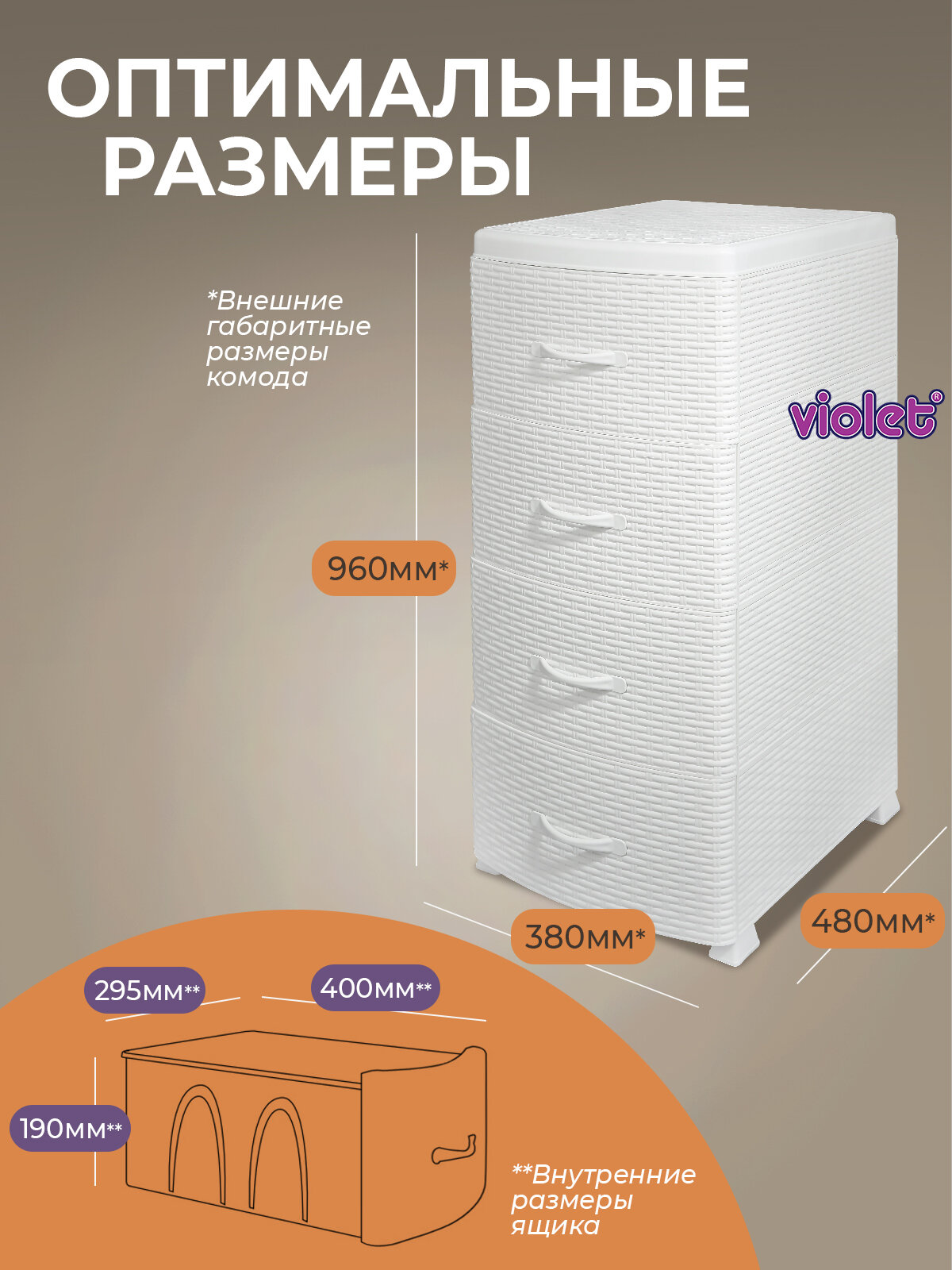 Комод 4 Секции "ротанг" Слоновая Кость 470*390*960 (1) Виолет .