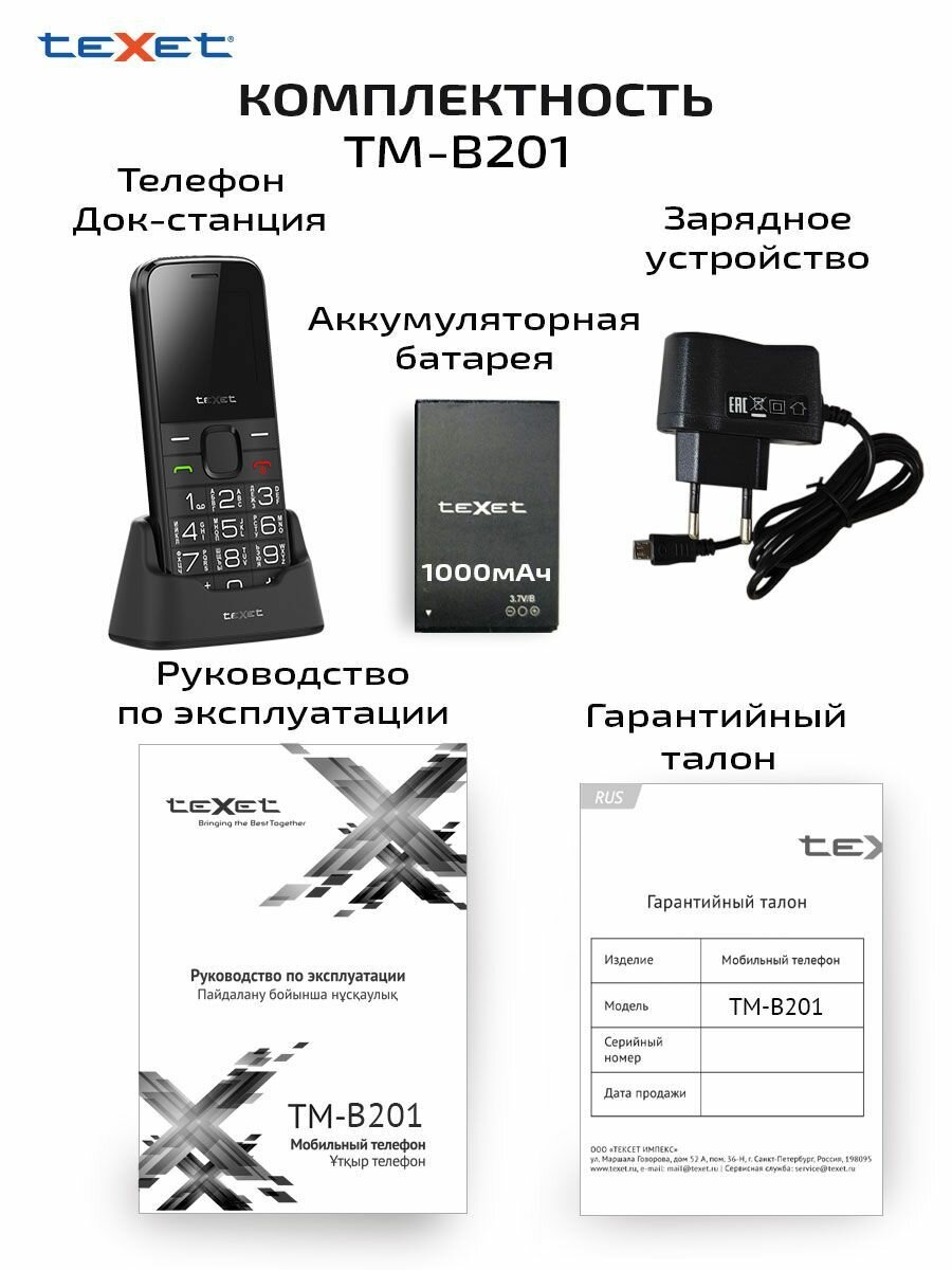TM-B201 Сотовый телефон Texet TM-B201 черный
