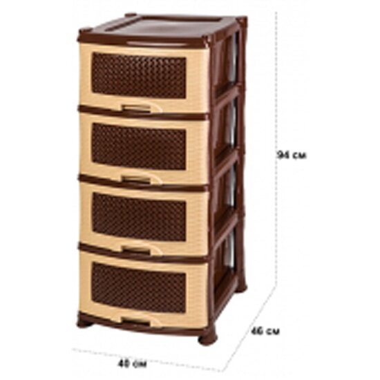 Комод Полимербыт Плетенка, бежево-коричневый, 4 ящика