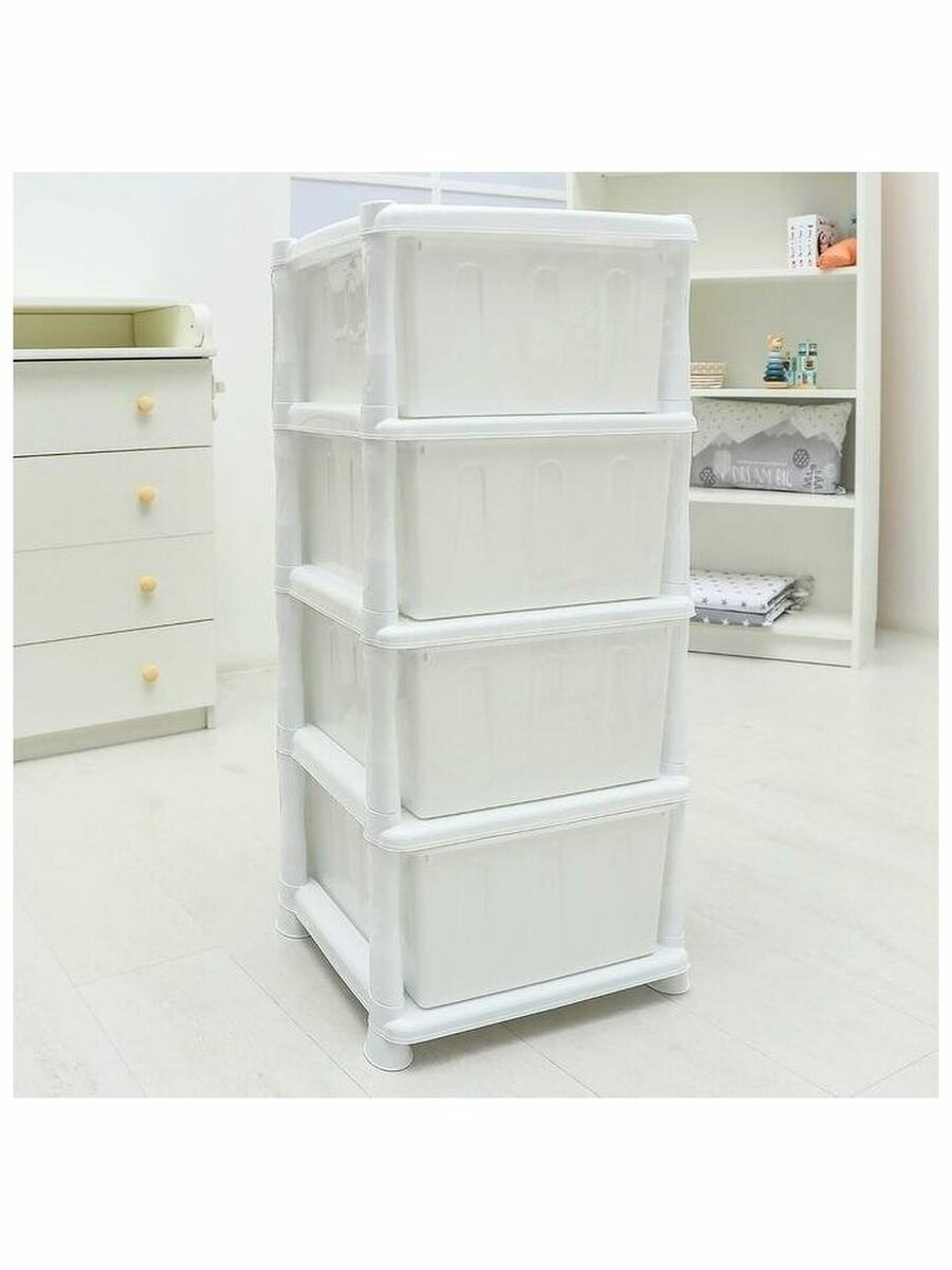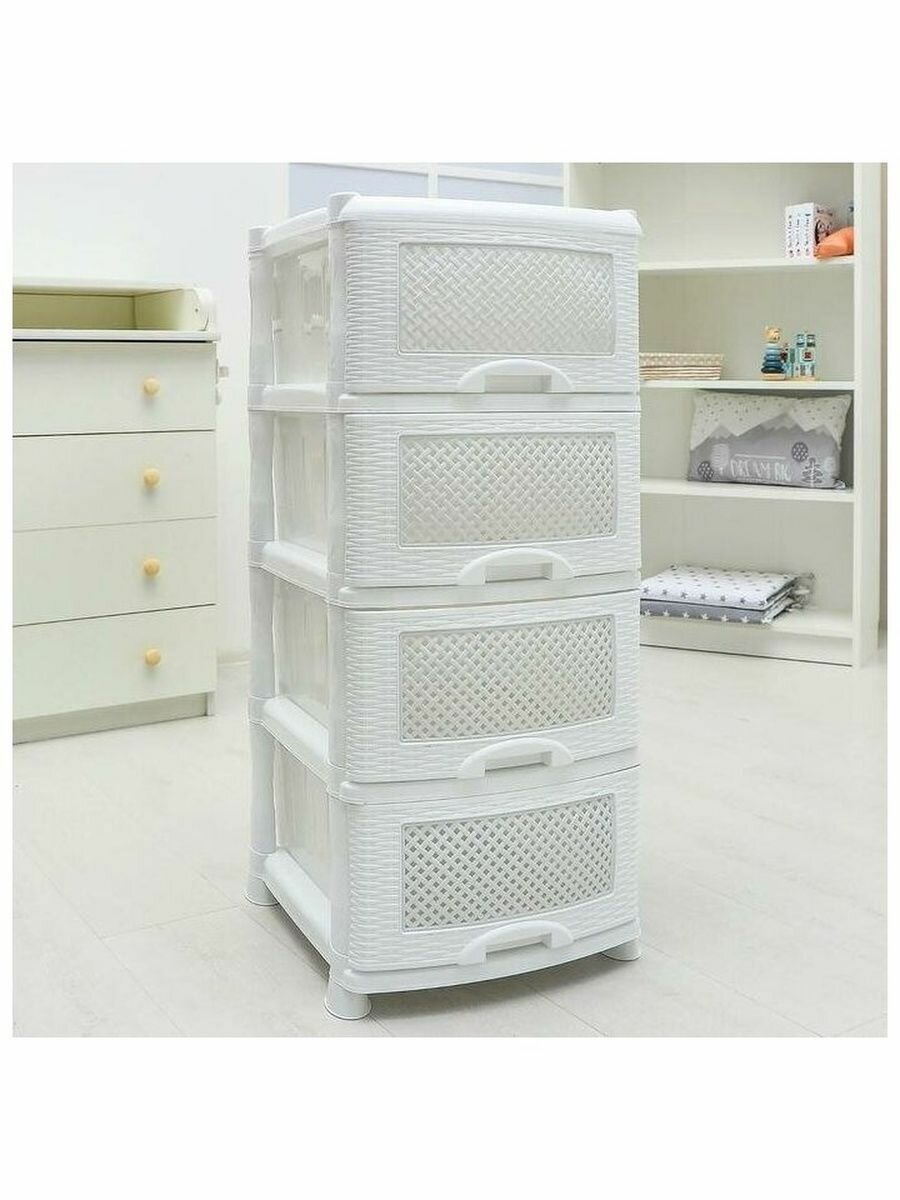Комод пластиковый Плетёнка с 4 ящиками / универсальный стеллаж для хранения вещей / органайзер для аксессуаров, цвет белый