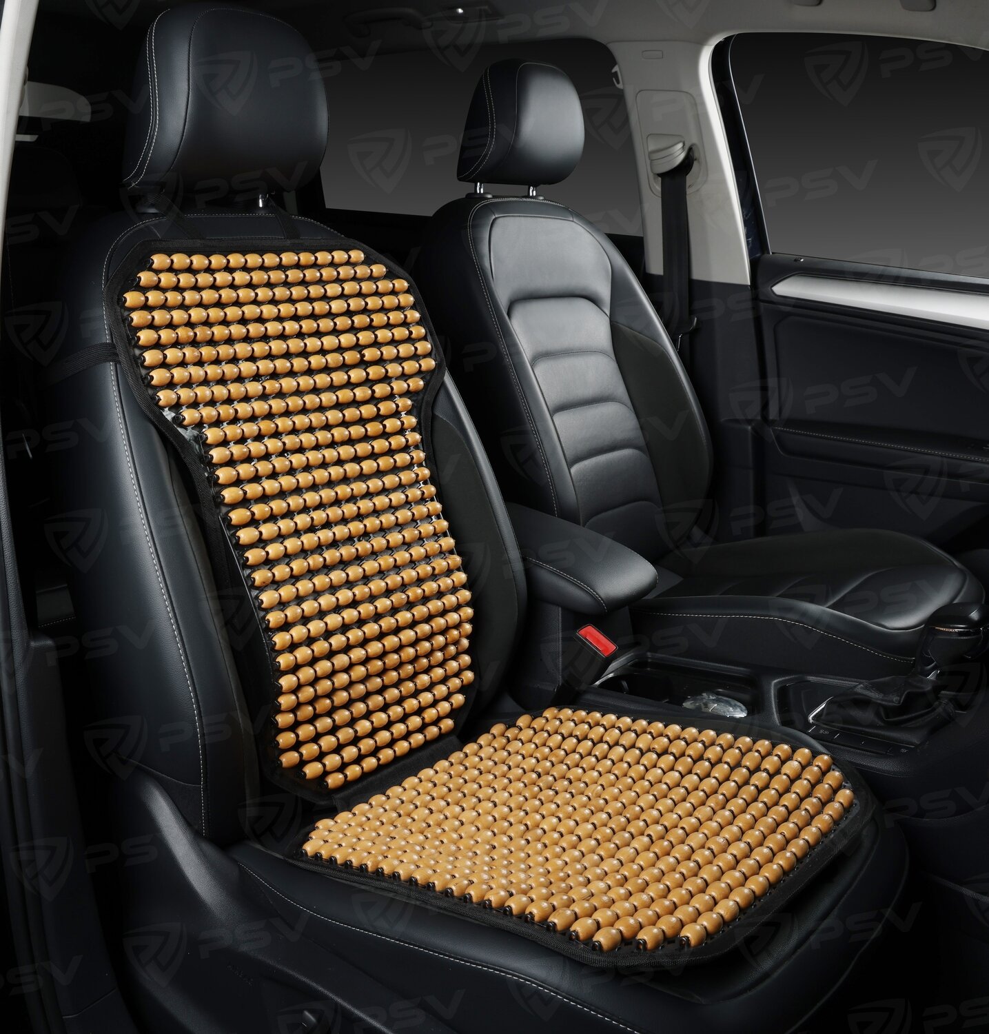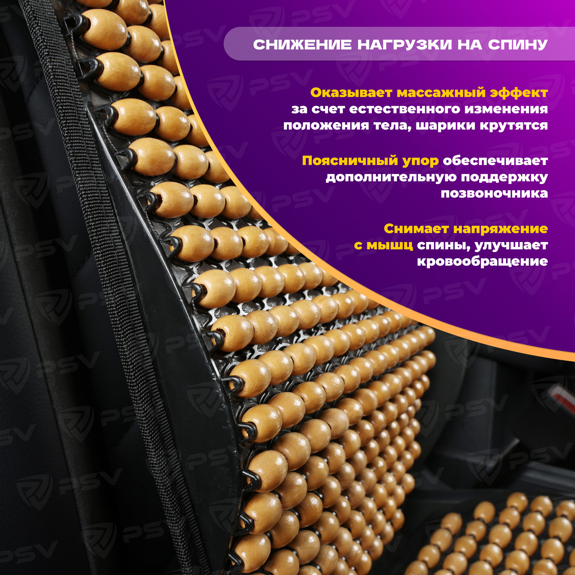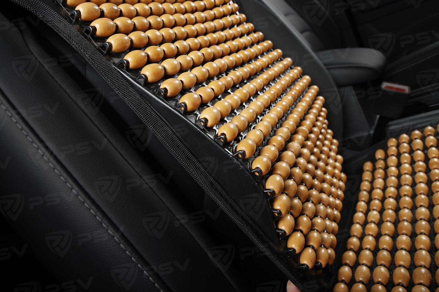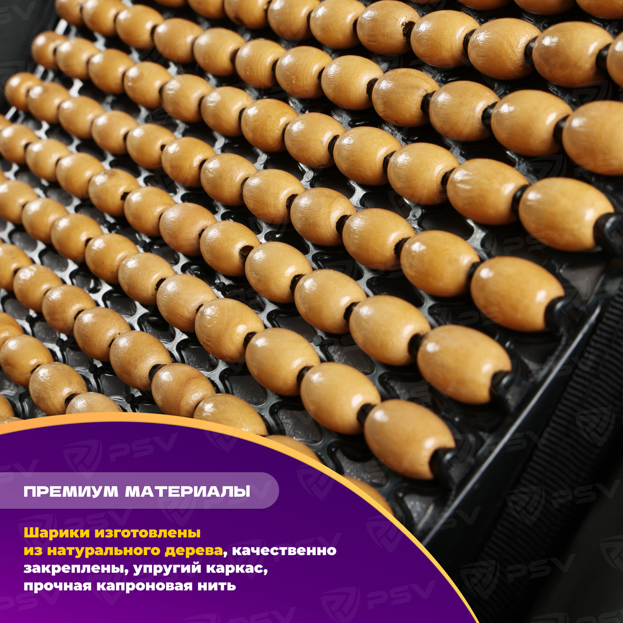 PSV 137158 Накидка на сиденье массажная деревянные шарики PSV 2010 большая с поддержкой черная