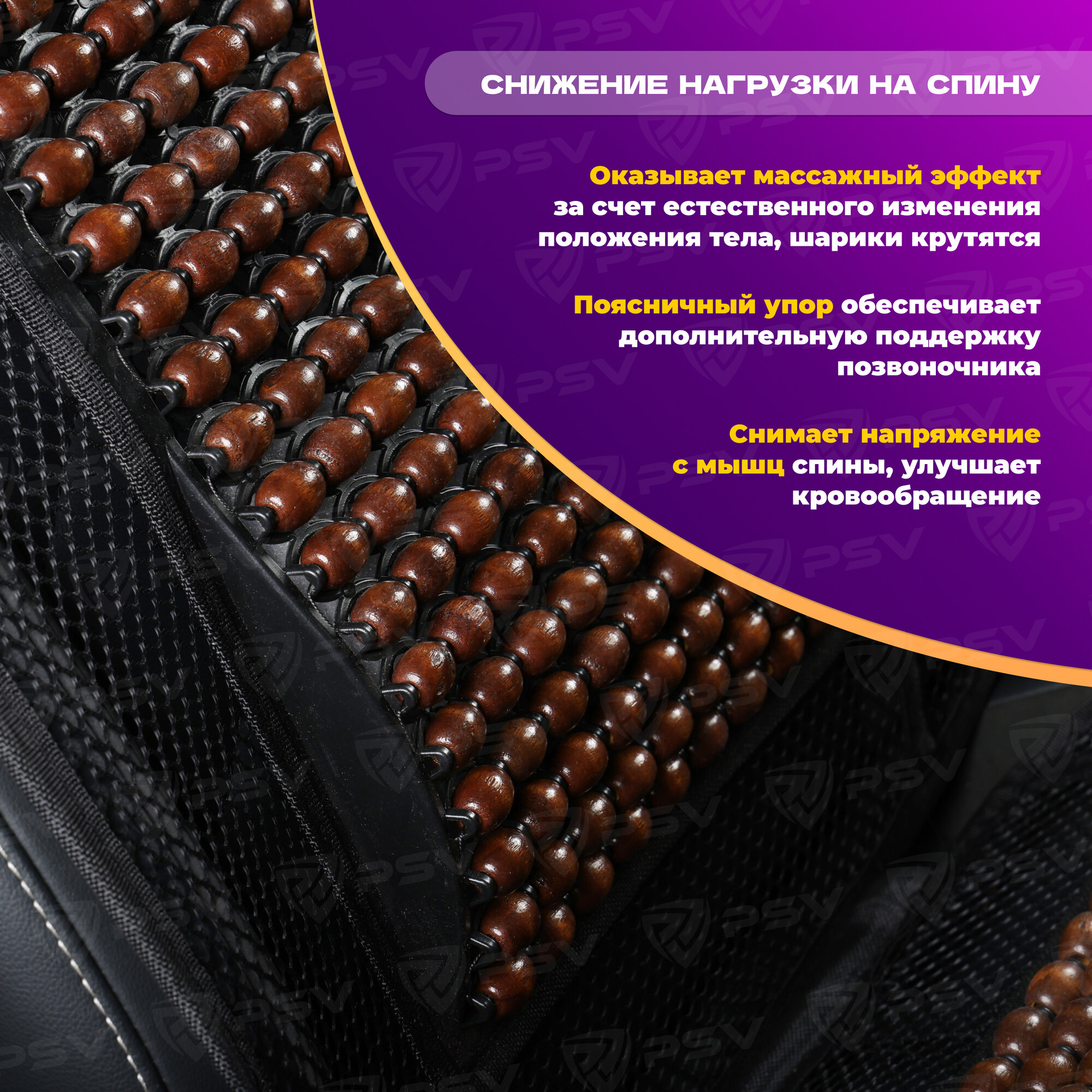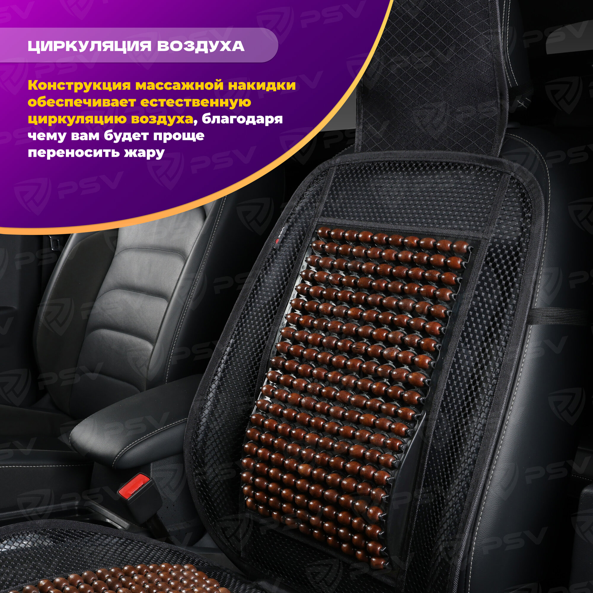 PSV 137158 Накидка на сиденье массажная деревянные шарики PSV 2010 большая с поддержкой черная